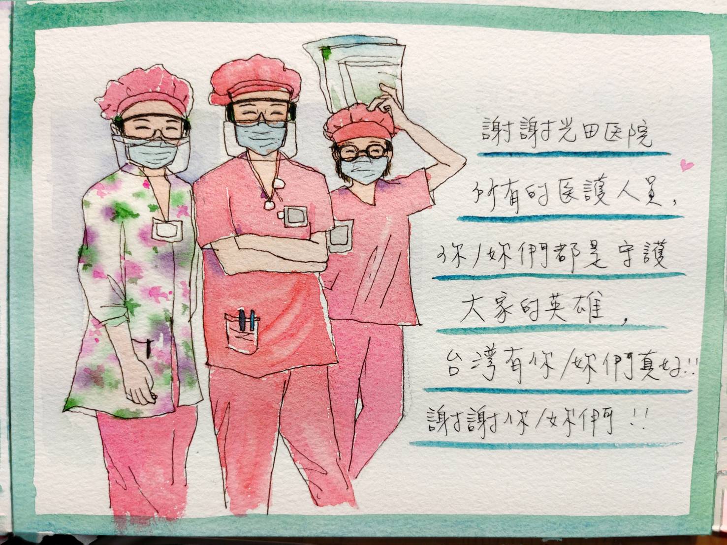 5月中疫情爆發後,光田醫院陸續收到來自各界主動表達對前線防疫人員的心意,除了為醫護補充元氣餐點外,還有N95口罩、呼吸神器等防疫物資,另外也有部分的人捐款表示要支持醫護。