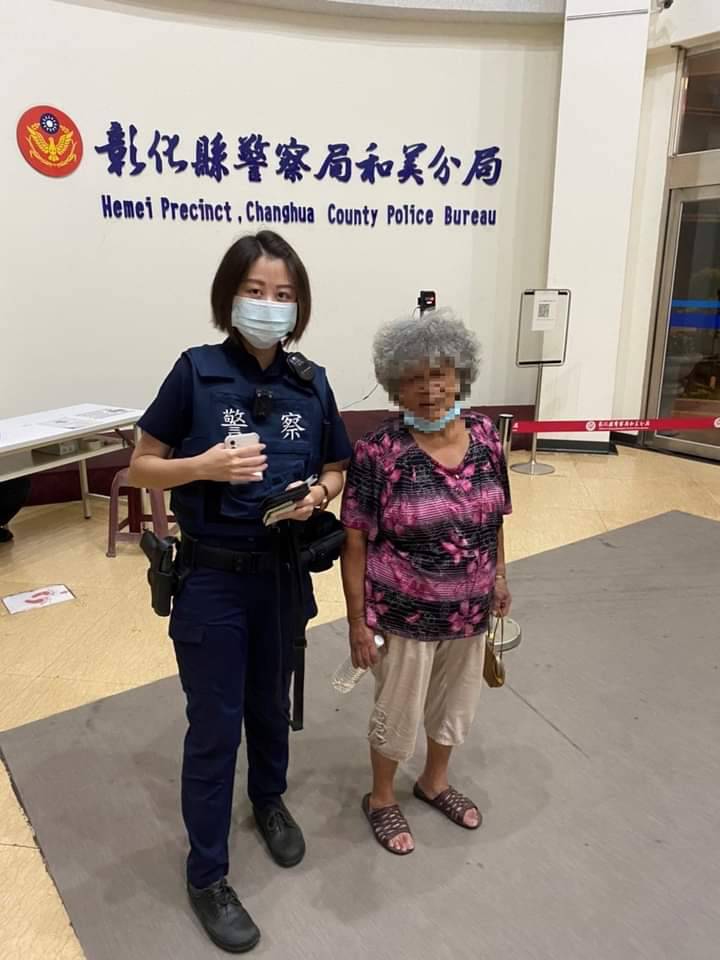 和美分局和美派出所警員蔡玥漩、警員林鈺壹於17日擔服22至24時巡邏勤務,接獲民眾報案彰美路6段336號前有迷失老人,警方到場了解情況,發現老婦正呆坐在電動機車上,看見員警前來後,非常激動抓住員警雙手,神色緊張。員警先是安撫老婦情緒並檢視身體狀況,確定老婦無礙後詢問身分及住址,然而老婦無法清楚說出家中地址,只說出自己姓氏及家中電話,員警聯絡後告知家屬將先送老婦回所內,請家屬前來接回。
