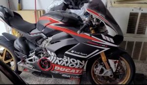 為避免引人側目,陳男還懸掛偽造車牌,全案經警方蒐證後聲請搜索票獲准,並在今天清晨前往陳男的住處偵辦,除逮捕陳男並查扣涉案的重機一部。