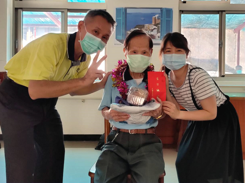 榮民之家副主任何興隆表示,疫情雖微解封,但長照機構仍維持三級警戒,長輩無法外出,長時間下來,情緒難免波動起伏,今日慶生會場面雖簡單迷你,但洋溢溫馨氣氛,希望藉由生活中一點小歡樂,能讓長輩們堆疊成大快樂,緩解緊繃神經,安度疫疾風暴。
