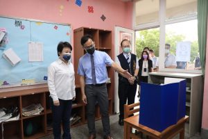 盧秀燕指出,雖然警戒降到二級,但重視考場安全,比照警戒三級部署,包括全程戴口罩、動線座位距離1.5公尺,以往每個試場可容納42人,今年一間教室只安排20名考生應試,每個座位都有隔板,另有隔離試場安置發燒的考生。