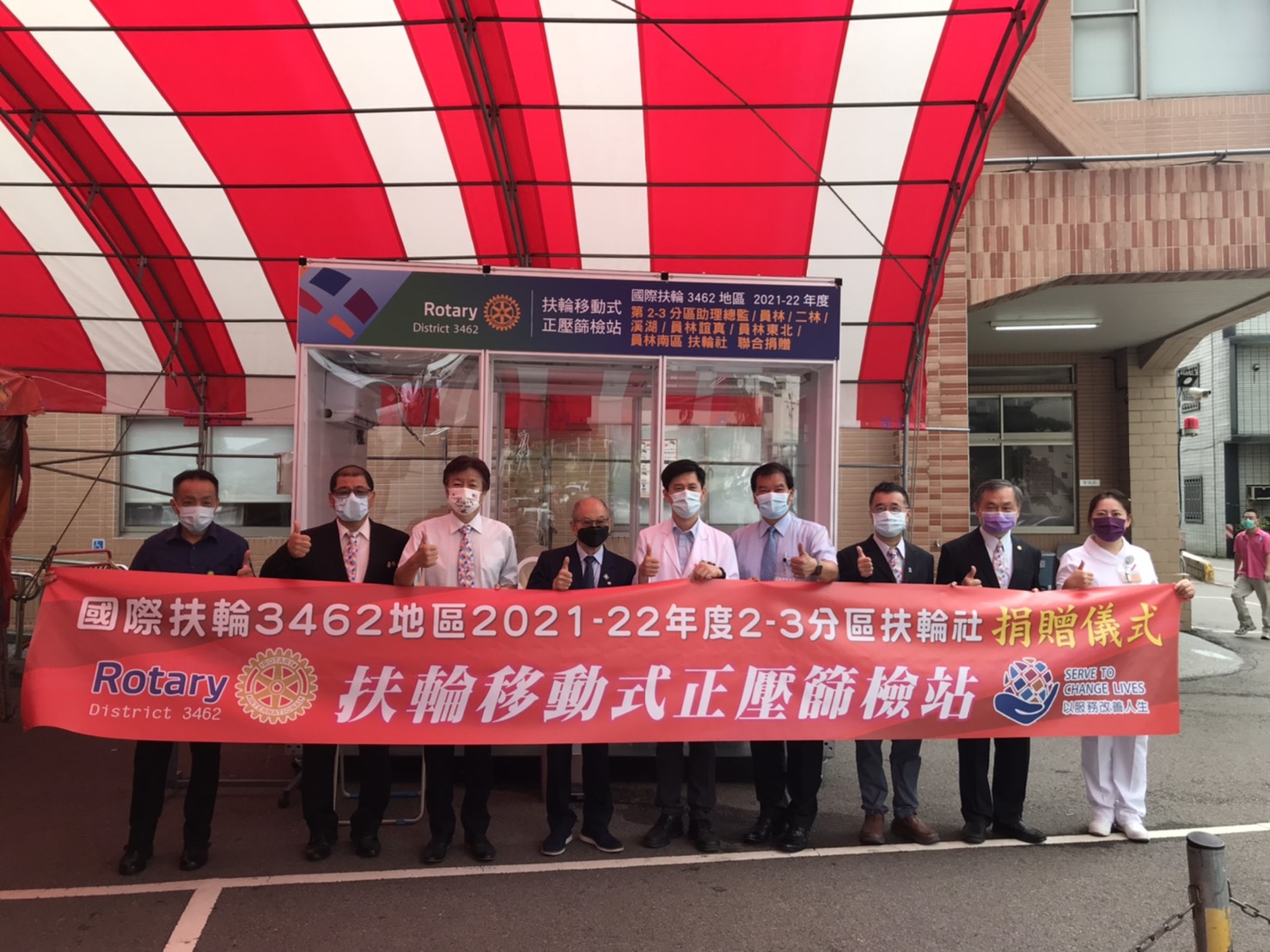 疫情嚴峻,有鑑於戶外快篩站的第一線醫護人員得在高風險、高溫、高濕的惡劣環境下工作,扶輪為此感謝醫護人員,全力投入維護民眾健康,國際扶輪3462地區2-3分區2021-2022年度助理總監李正雄暨員林扶輪社、員林誼真扶輪社、溪湖扶輪社、二林扶輪社、員林東北扶輪社、員林南區扶輪社聯合捐贈員林市員生醫院一座「移動式正壓篩檢站」。並於(26)日上午10點舉行捐贈儀式,給予醫院醫護人員使用,鼓勵前線投入防疫的醫療。