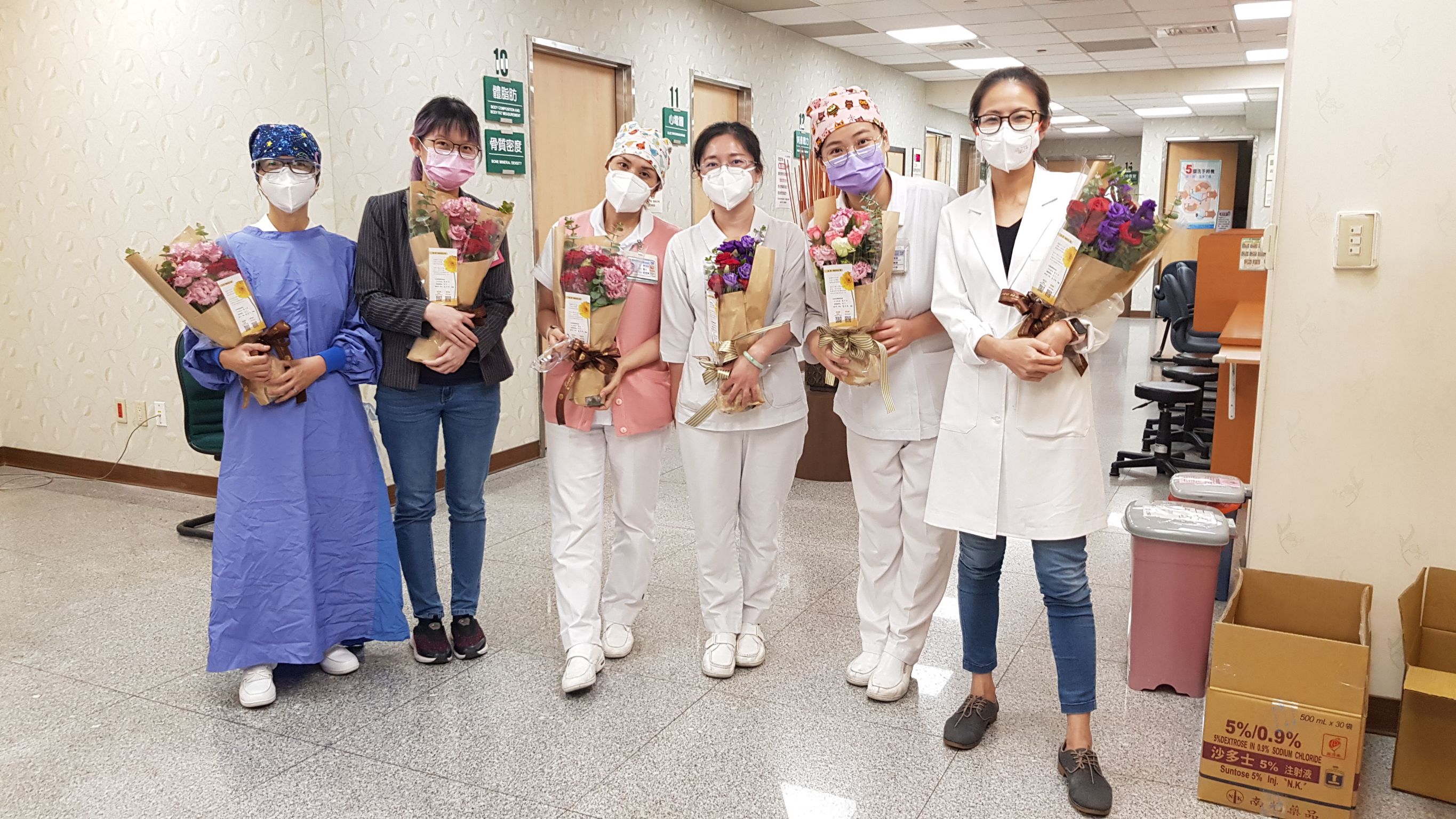 疫情至今,童綜合醫院護理師每天為數百民眾接種疫苗,不停抽藥、消毒,使護理師們的手部乾燥變皺、紅腫,甚至起水泡破皮。農糧署為感謝第一線防疫人員辛勞,特地與台灣花店協會合作,致贈花束給各接種站防疫人員,童綜合醫院獲贈100束花束。但為了讓民眾都能儘速擁有足夠的保護力,護理師們仍堅守工作,服務所有依接種順序到院施打的民眾。
