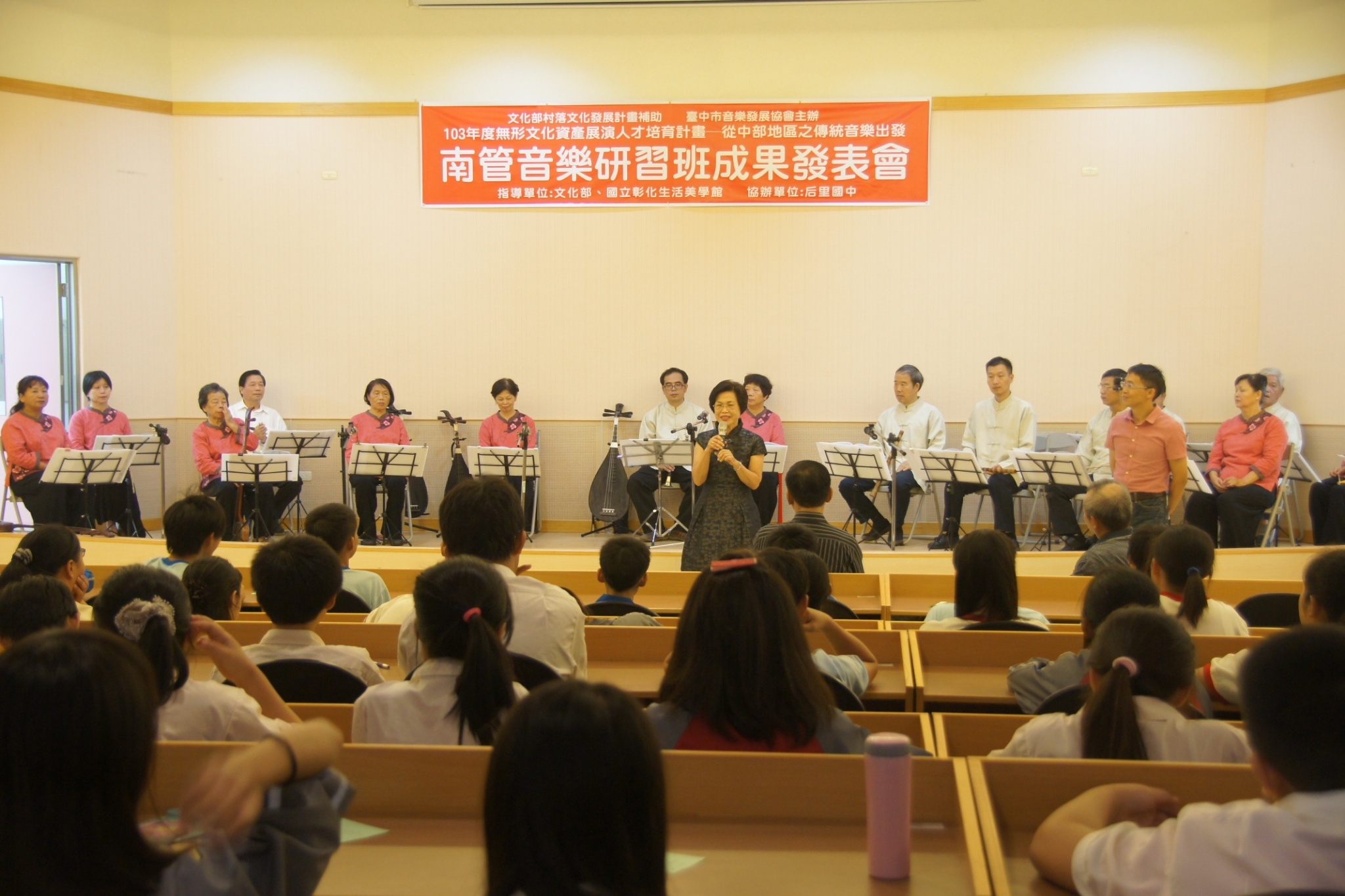 教育局分享,后綜高中王建斌校長出身於后里區南管世家,退休前致力推展傳統南管音樂教育,並編印許多南管音樂教材,供學校教學使用;此外,王校長也催生后里長青學苑的成立,嘉惠后里區銀髮族超過1,000人。