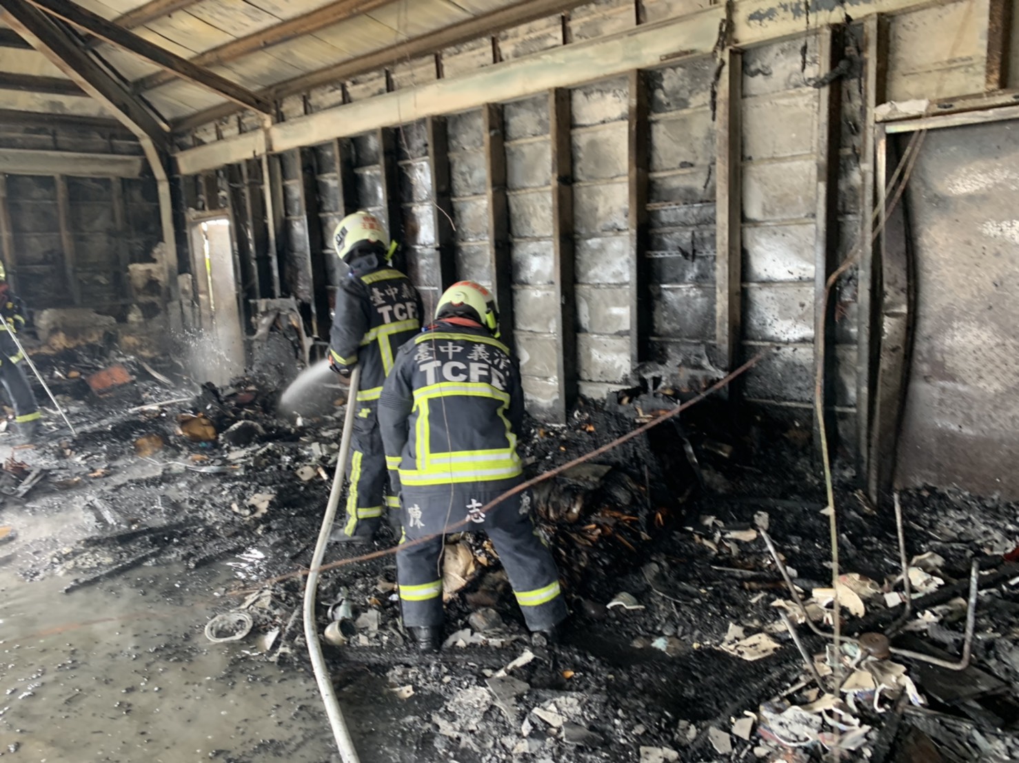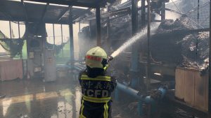 梧棲分隊員到場回報,現場為8樓RC建物,頂樓鐵皮加蓋部份起火燃燒,出水搶救,無人員受困,燃燒屋頂鐵皮屋內雜物,燃燒面積約150平方公尺,財物損失待查,起火原因由大隊火調人員調查中。