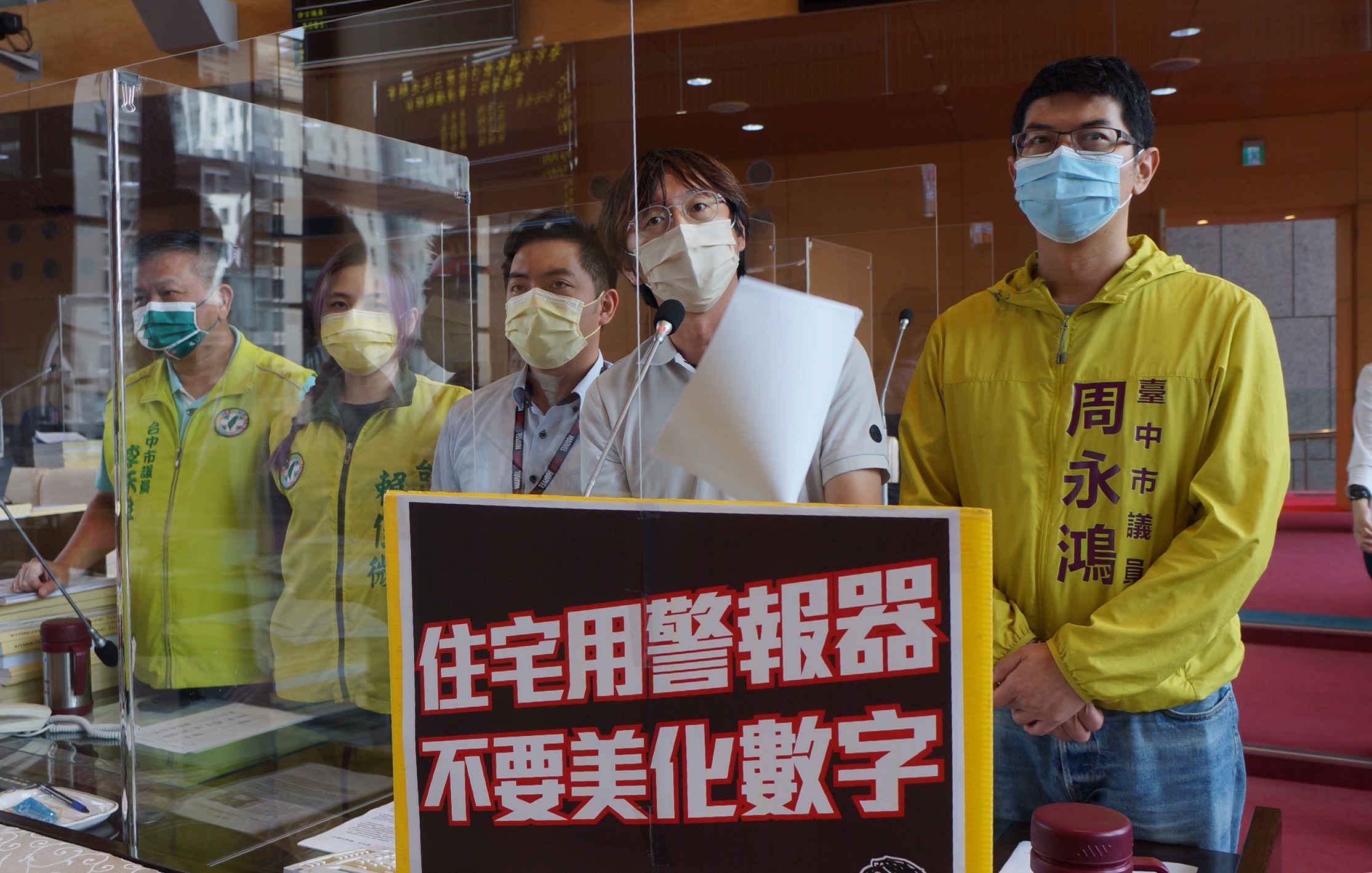 臺中市市議會今日召開警消環衛業務質詢,民進黨市議員江肇國、蔡耀頡、賴佳微、周永鴻、李天生針對住宅用火災警報器質詢。根據消防署統計,2020年臺中市火災發生次數位居六都第一名,而住警器設置率比率竟位居六都最後。對此,議員們表示,消防局應該積極加速住警器的安裝,並且增加相關預算的編列,才能有效預防火災發生造成嚴重損失。