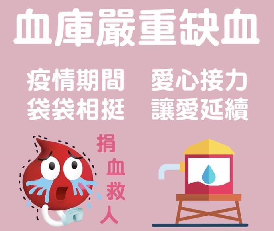 南投捐血中心表示,在武肺疫情逐漸趨緩降至二級後,許多病患陸續出現醫院、診所看診,增加醫療血量使用大增。但防疫狀態下,平時會進入校園、公司及國軍部隊募捐血,至今無法執行,造成血液庫存數量持續降低,現今又遇上連日大雨,使原本急缺的血液庫存量又見底,南投捐血室懇請熱血公益的民眾,捲起衣袖讓我們的血庫存再次復活滿血。