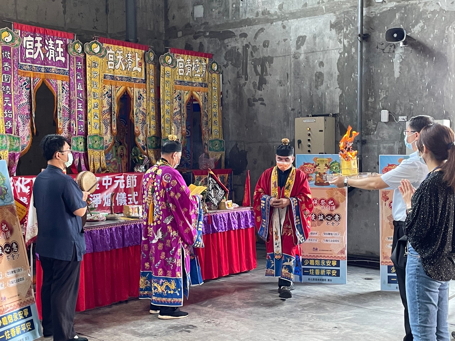 彰化環保局呼籲民眾中元普渡時,落實防疫工作,確實配戴口罩、保持社交距離,盡量減少焚香、集中焚燒金紙,改採以糧代金、以功代金、雙手合十、一炷心香祭拜,減少空氣污染造成環境的危害及維護民眾自身健康,共同響應環保祭祀作為,可洽各鄉鎮市公所清潔隊,或撥打環保局紙錢集中清運專線04-7119356洽詢預約。
