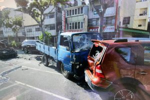 整起案件共波及4部車輛,造成尤姓男子(3方車)及江姓女子(4方車)受擦挫傷,無生命危險,豐原分局依規定處理。