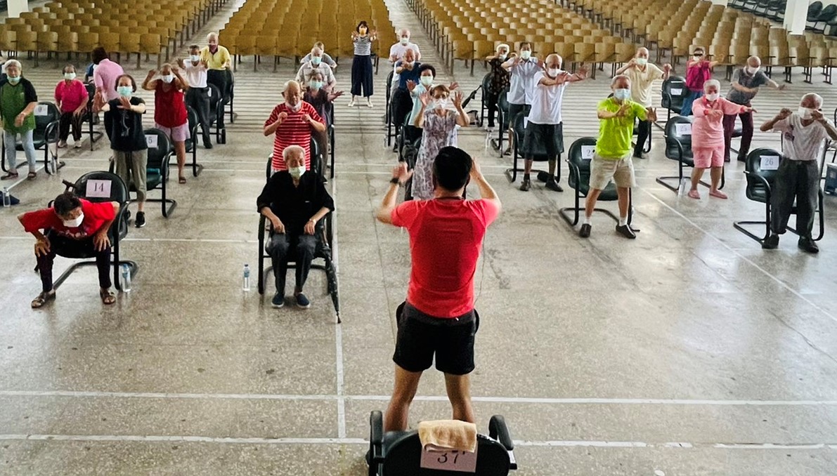 彰化榮家保健組長陳宛汝,知曉榮家屬於人口密集機構,院內住民因為疫情減少非必要外出,在這期間,家區啟動防疫新生活,護理師們向長輩衛教宣導洗手正確知識,以及保持適當的社交距離、外出配戴口罩,到戶外空曠處走路運動、曬曬太陽,宅在家也可以做簡單的體適能活動或閱讀書報等靜態的休閒活動,並依照疫情指揮中心8月10日後相關長照機構管制措施,榮家開放部分活動,安排遠距視訊或現場的非藥物治療職能活動,帶領住民活動筋骨,讓長輩在疫情期間也能輕鬆鍛鍊身體,保持好體力。