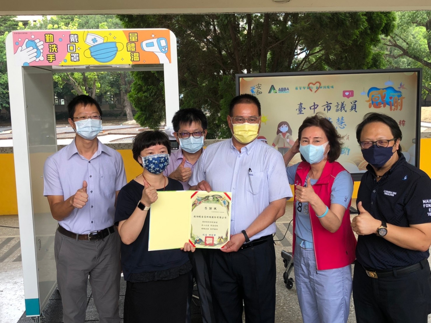 暑假結束,台中市454所公、私立高中職(含)以下的各級學校開學,為讓學生健康回到校園、家長放心,在市議員黃馨慧牽線下,啟翔輕金屬董事長陳百欽今日捐贈「防疫通道」一座給西屯安和國中,由校長柯瓊華代表受贈,希望能讓安和國中師生每日到校都有多一份健康保障、做到全方位防疫保護。