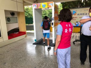 校長柯瓊華表示,非常感謝啟翔陳百欽董事長熱心公益及黃馨慧議員大力牽線,有了這座「防疫通道」對每日防疫消毒、快速又完全,讓師生與家長都能安心、放心。