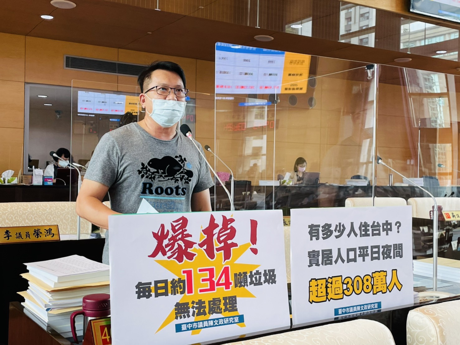 台中市議會今日進行議會總質詢,市議員陳文政要求市府,面對台中人口暴增,市府應積極面對垃圾處理量不足的問題。陳文政說,根據內政部109年11月實居人口數調查,台中實居人口高達308萬人,與戶籍人口數281.9萬人相比,多出約26萬人。