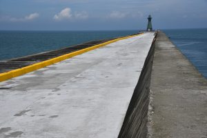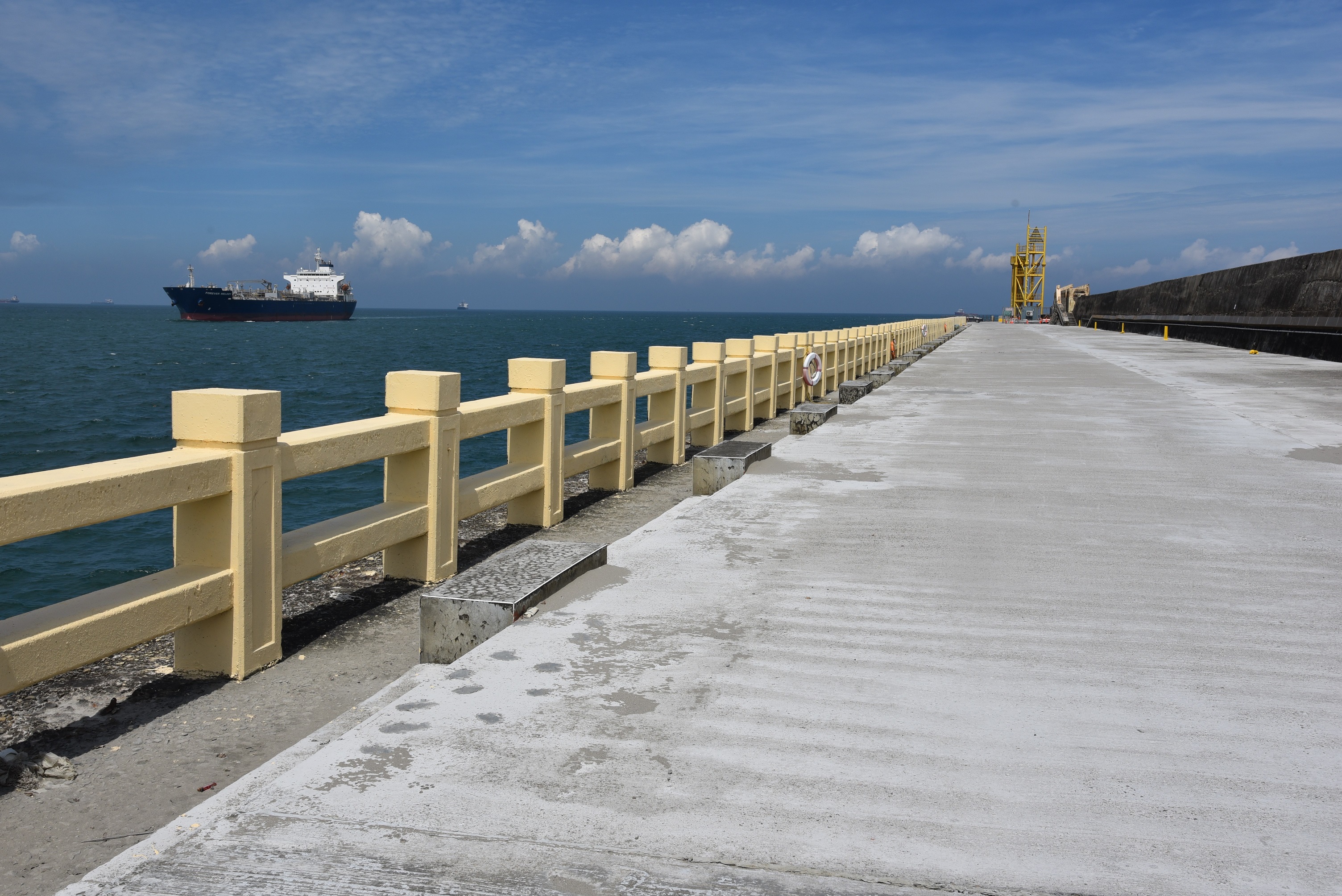 北堤既有堤面長年承受海浪越波的拍擊侵蝕,多處堤面已造成損壞,影響車輛通行,部分伸縮縫亦出現坑洞;臺中港務分公司基於維護釣客安全,並使示範區內的各項設施更趨完善等考量,自109年度起陸續投入約新臺幣5,000萬元經費,對北堤堤面進行加鋪、輪檔打除重設與粉刷警示漆、新設安全梯暨其他附屬設施進行改善,總改善長度達2,500公尺,業已於今(110)年7月29日全域改善完成。