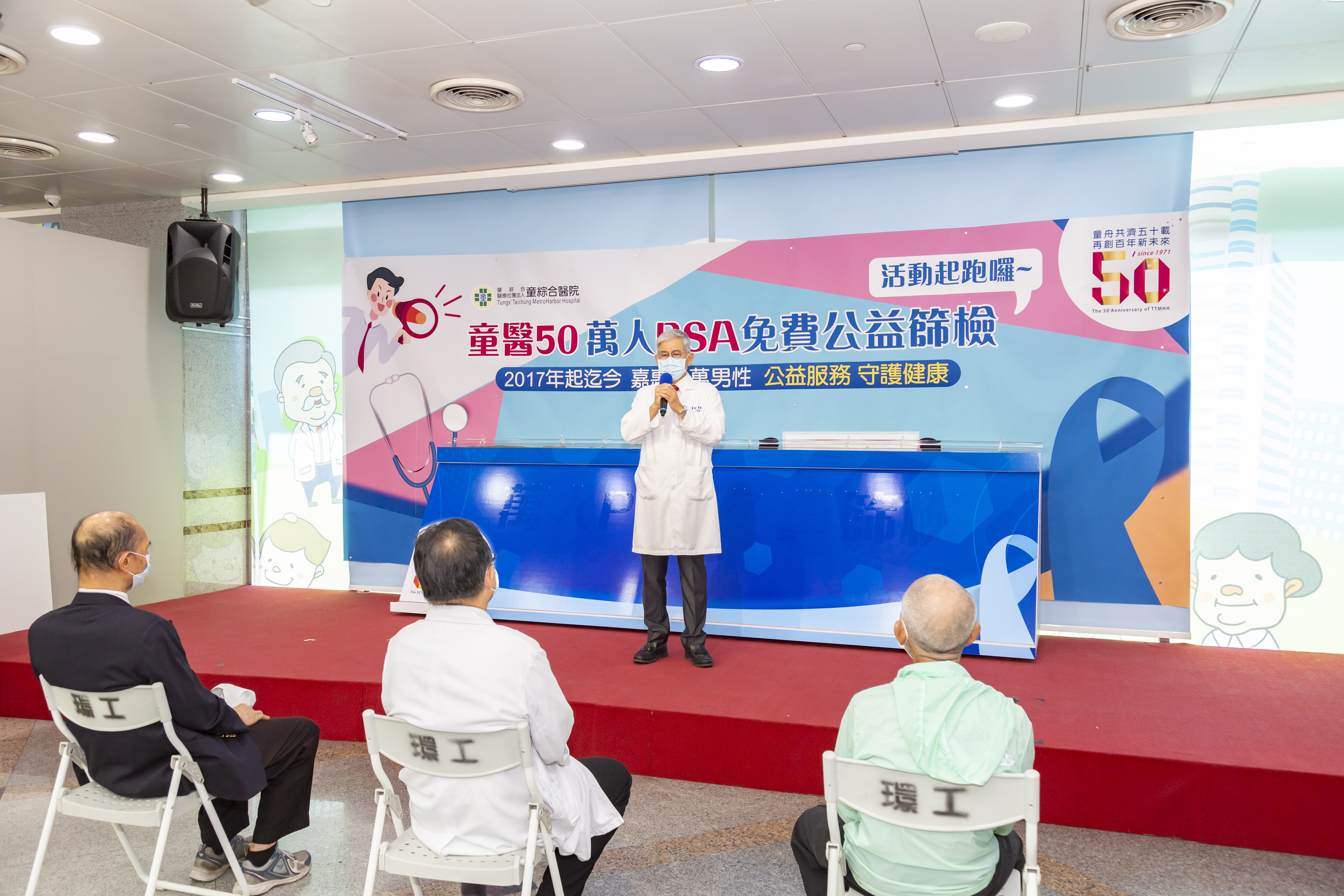 童敏哲總院長表示,童綜合醫院深根地方已經五十年了,為了喚起民眾重視自身健康,連續三年舉辦PSA免費篩檢活動,只要符合50歲以上男性,或40歲以上具攝護腺癌家族病史的男性,就可免費受檢。今天起結合童綜合醫院合作的社區醫療群診所辦理免費PSA篩檢,一起為民眾健康來把關。
