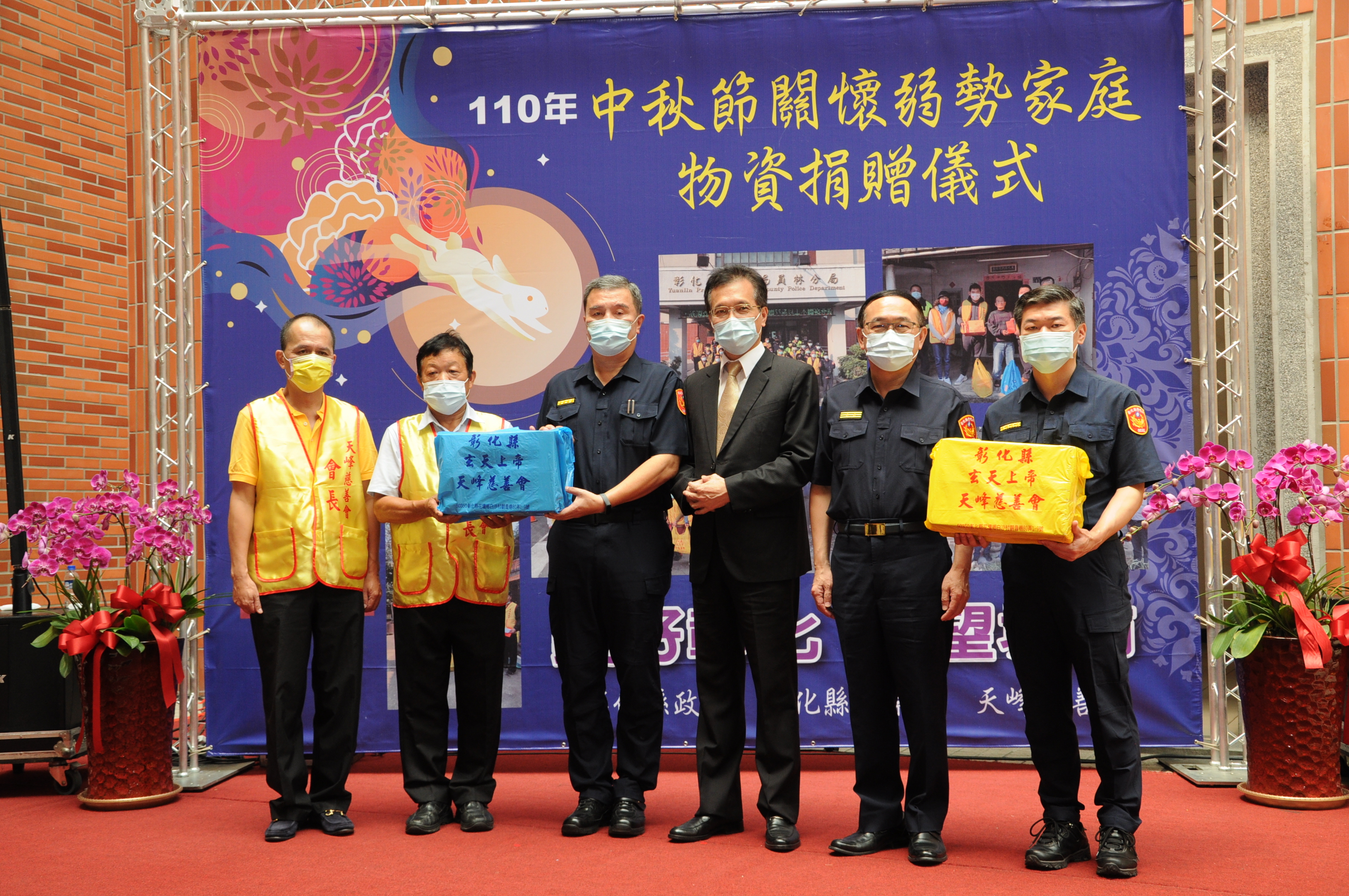 彰化縣政府及彰化縣警察局結合天峰慈善會,於9日上午在彰化縣警察局中庭辦理「關懷弱勢族群」活動,發放物資給縣內需要幫助的弱勢民眾,發揮「中秋傳愛、關懷相伴」的精神,嘉惠彰化縣民,讓他們感受到社會各界的愛心關懷及溫暖,創造「美好彰化 希望城市」的縣政願景。