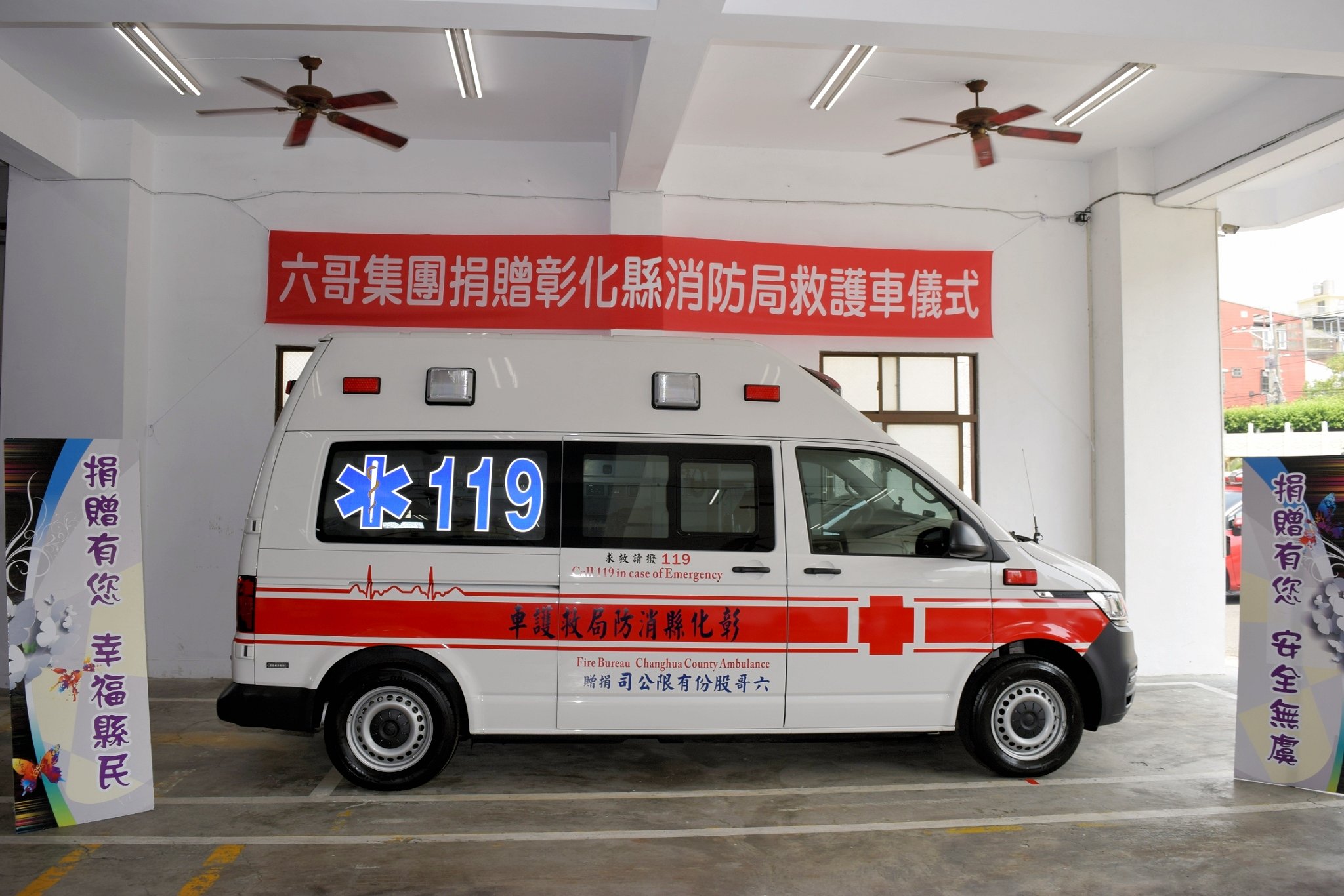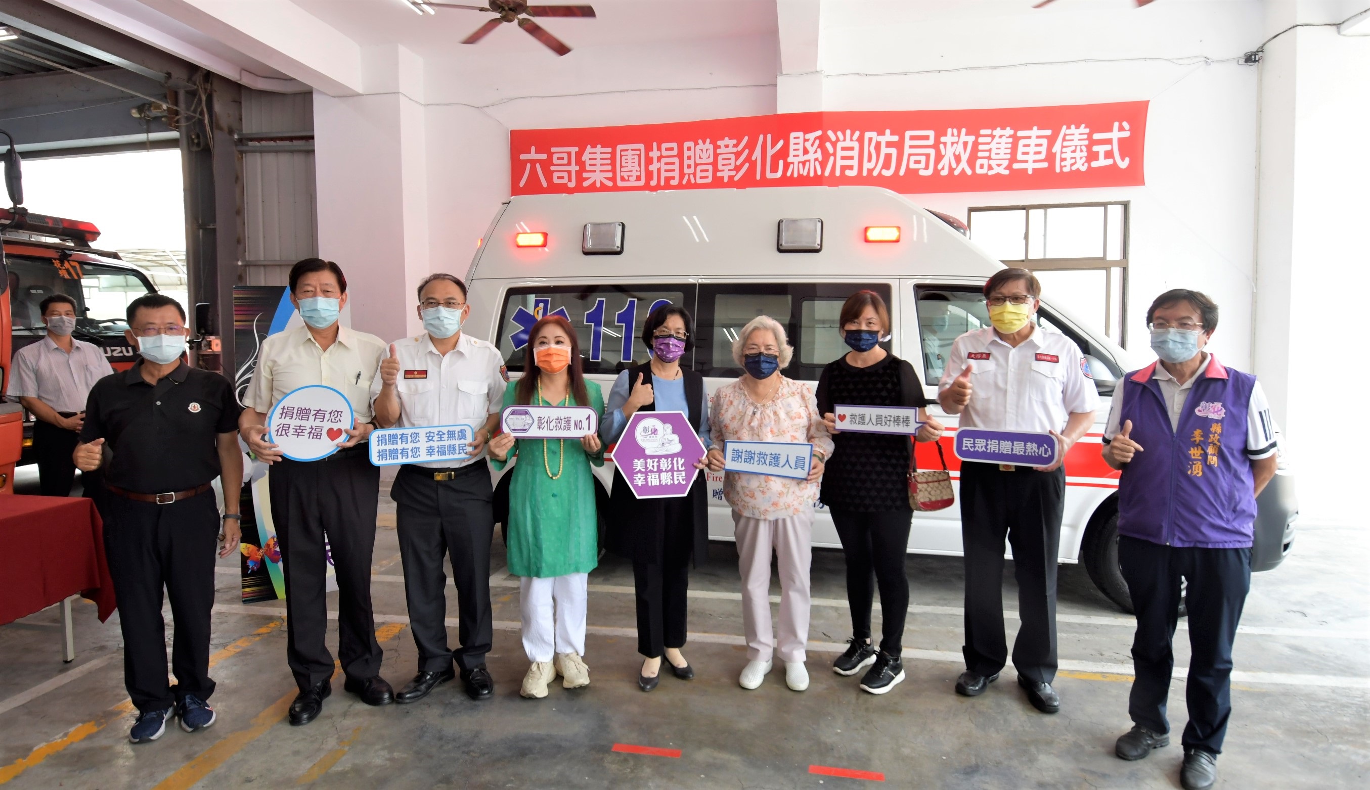 彰化縣花壇鄉六哥集團為回饋地方,今(9)日捐贈高頂救護車1輛予彰化縣消防局,以實際行動回饋社會、造福鄉親縣民,彰化縣長王惠美出席代表接受,與會者尚有各級長官、消防局同仁等人員。