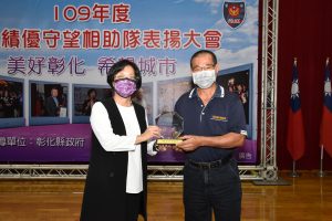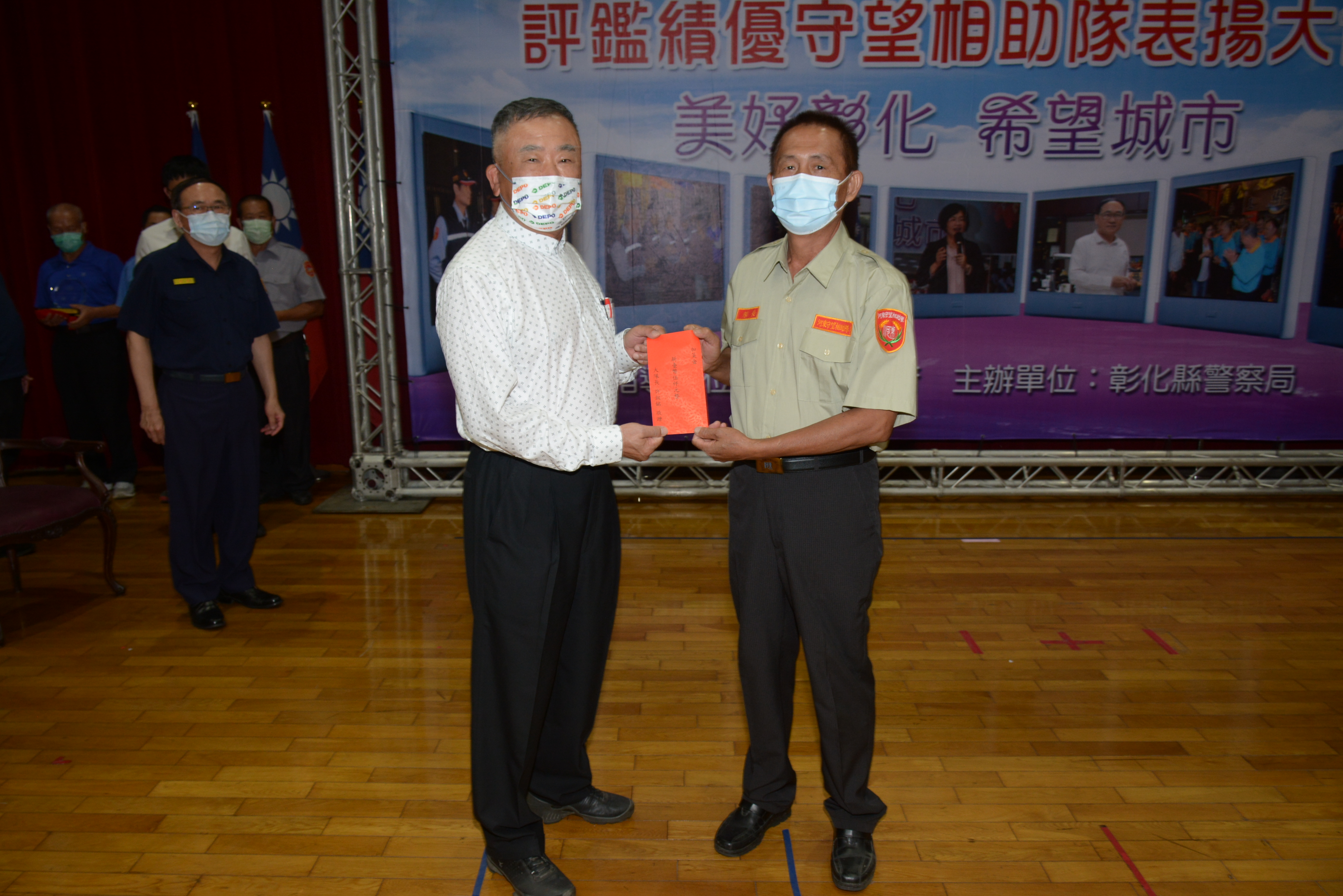 彰化縣政府於23日表揚(109)年,表現優異共56隊守望相助隊,過程中王縣長致贈獎牌及獎勵金,特感謝大家維護社區安全的努力外,守望相助隊許叙銘大隊長也特別提供各績優守望相助隊每隊加菜金新臺幣(下同)5,000元,總計28萬元整,慰勞隊員們多年來為鄉里的付出。