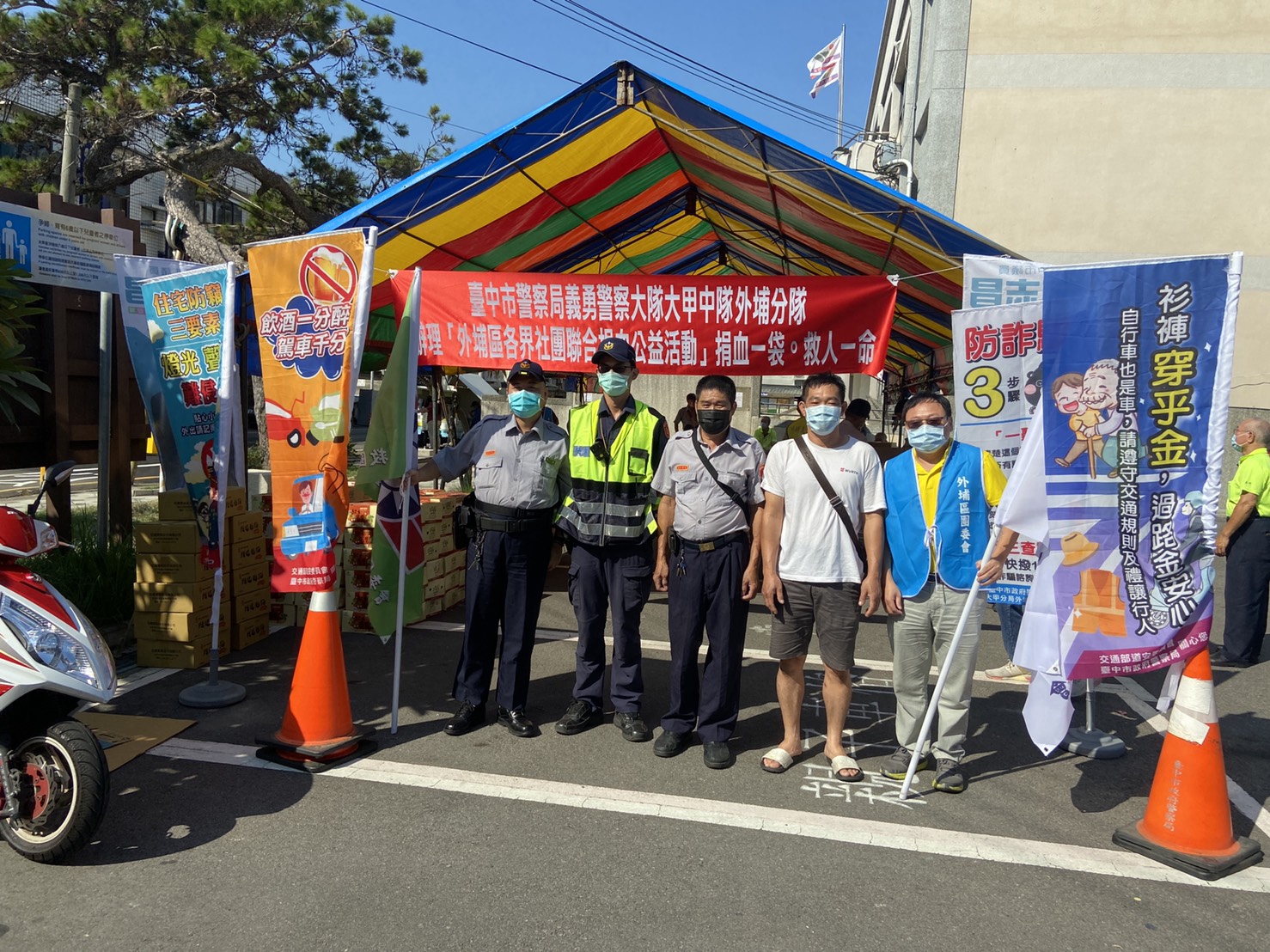 新冠肺炎疫情漸降温,中央流行疫情指揮中心逐步地放寬管制措施,各區捐血活動陸續恢復,仍無法維持安全存量,臺中捐血中心發出血液「偏低」訊息,臺中市政府警察局大甲分局外埔分駐所結合轄內外埔義警分隊、民防分隊、後備憲兵荷松協會、救國團外埔區團委會、後憲保全及豐盟有線公司等單位特別於110年9月26日9時30分至16時整在外埔區公所旁停車場,號召民眾挽袖捐血募集愛心,派出所除響應本次捐血活動,也於現場宣導犯罪預防及交通安全觀念擴大活動成效。