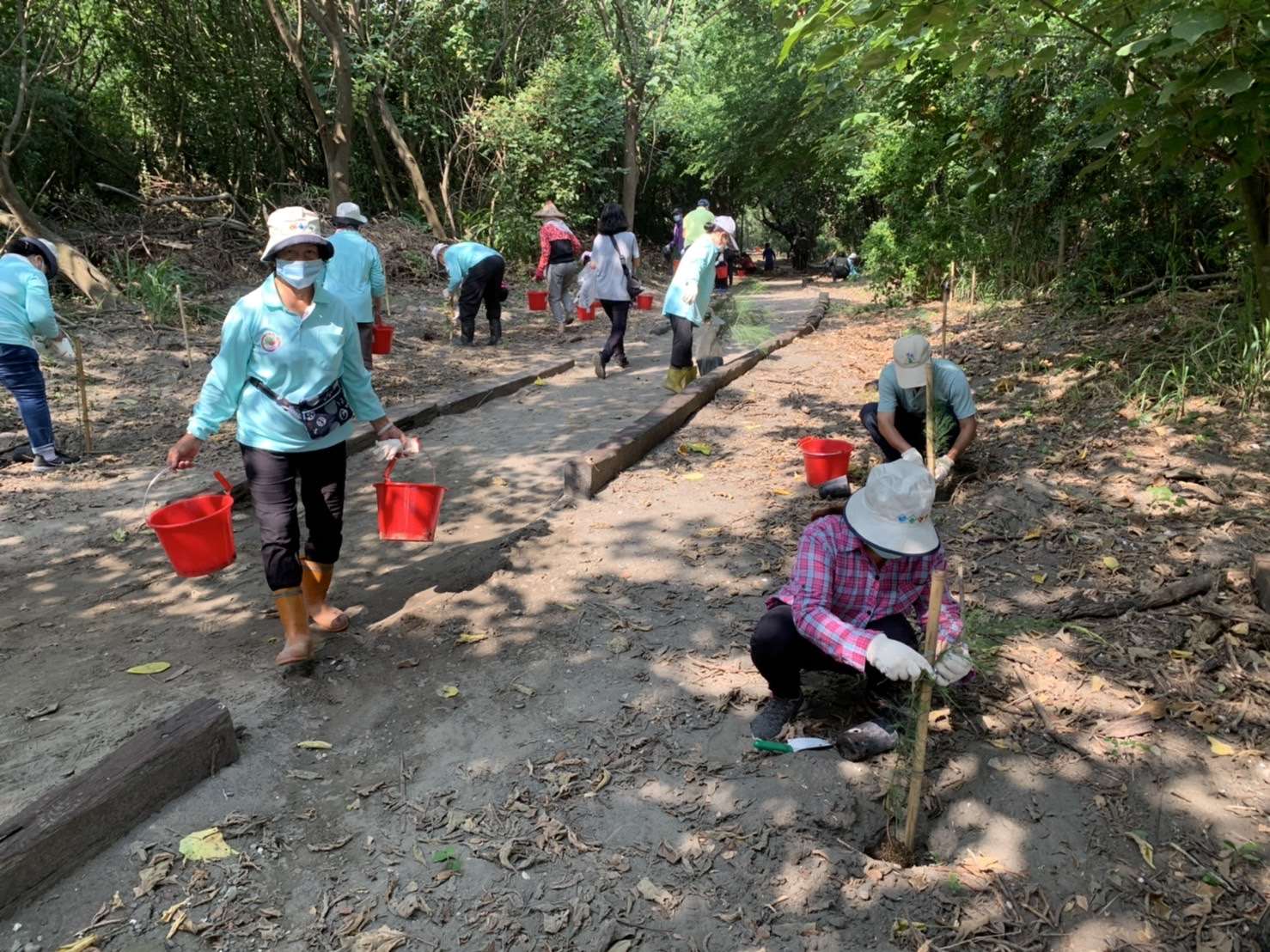 今日一早,秋風徐徐,四番地社區夥伴們齊聚於四番地保安林北側,準備在濁水溪南側的保安林迎風面孔隙栽植530株木麻黃及黃槿,縣長張麗善、林務局技正鄭文惠、農業處副處長蔡耿宇、議員廖偉晴、游淑雲、二崙鄉長鍾福助、嘉義大學教授何坤益等,參與四番地社區理事長廖蕙娟帶領的社區夥伴,一起手植木麻黃及黃槿,活化防風林林帶,建構綠色廊道,營造優質家園。