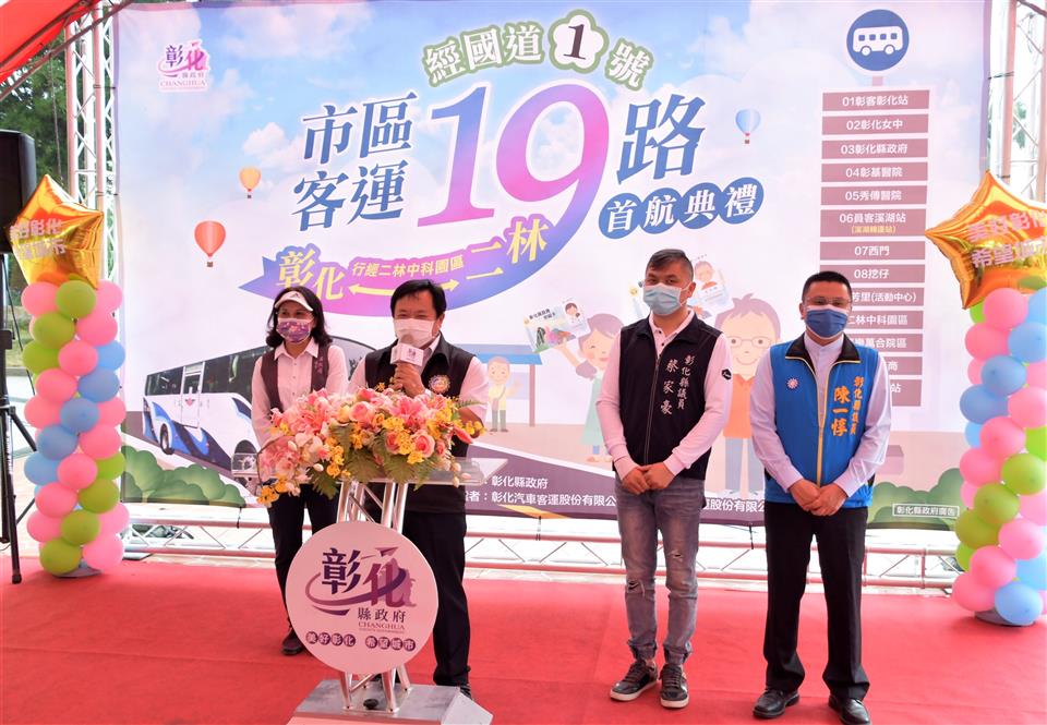 王縣長及工務處表示,【19路】「彰化─二林(經國道1號)」公車路線從彰化客運彰化站發車,沿彰化市中正路一段、中山路二段、中央路、中華西路、國道1號彰化交流道、國道1號員林交流道、員鹿路、二溪路、挖仔路、太平路至斗苑路二林站,全長35.7公里,估計行車時間約60分鐘,比既有路線可節省30分鐘。沿途停靠彰化站、彰化女中、彰化縣政府、彰基、秀傳、溪湖站、西門、挖仔、梅芳里、二林中科園區、喜樂萬合院區、二林工商及二林站。每日共24個班次,二林站每日早上6點整發車;彰化站早上6點30分發車。在票價部分,全票基本票價是25元、全程最多92元,另外,持長青幸福卡及長青國民旅遊卡,可在每月1,000元補助額度內免費使用,65歲以上長青族也有半價優惠,歡迎民眾搭乘。