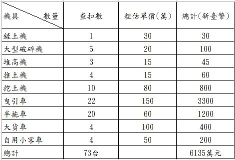 經保七總隊員警長期監控蒐證,110年8月間專案小組拂曉出擊,執行搜索票42張,範圍遍及桃園、臺中、彰化、雲林及嘉義等縣市,查獲13處非法棄置場址,非法堆置廢木材高達2萬4仟公噸,帶回42人偵訊,偵訊後3名再利用機構負責人遭羈押禁見。並查扣大型鏟土機、挖土機、曳引車等相關機具73部。全案由彰化地檢署於110年9月22日偵結,起訴49人,初步估計不法犯罪所得逾新臺幣7仟萬元餘。另外法院核准查扣犯罪嫌疑人動產及不動產,市值約新臺幣6仟萬元,將供日後擔保後續犯罪所得追徵。
