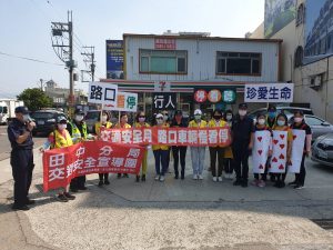 鑒於車禍中有6成發生於路口,本10月是全國交通安全月,交通部擇定今年以「路口安全」為主題,另為加深民眾印象,將以「路口慢看停、行人停看聽」宣導口號,呼籲駕駛朋友行經路口放慢速度、注意周圍人車、停讓行人通過;行人過馬路也要在安全地點停等、過馬路盯住來車、注意車輛警示音,然而田中分局除加強交通安全宣導,不定時於網路、社群媒體、社區治安座談會及至校園實施宣導外,本次為推動交通安全月以「路口安全」為宣導主題,特結合警察志工於交通安全月首(1)日手持才標語、布條到轄内菜市場、重要路口,進行路口交通安全宣導,另於本(10)月5日再於田中鎮中正路、斗中路口、社頭鄉中山路、社斗路口舉辦「路口安全宣導」快閃活動,目的就是為了提醒「駕駛人行經路口慢、看、停,行人停、看、聽」遵守道路交通安全規則,以確保安全。