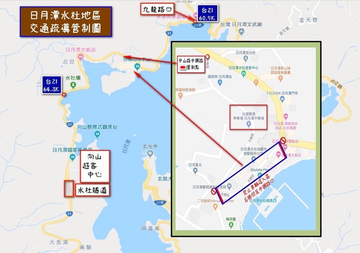 鑒於國慶期間,日月潭為風景熱點,為維持交通順暢,警方將全力投入國慶交通疏導工作,以提供最佳交通服務品質,請駕駛人配合相關交通管制及疏導措施事項如下: