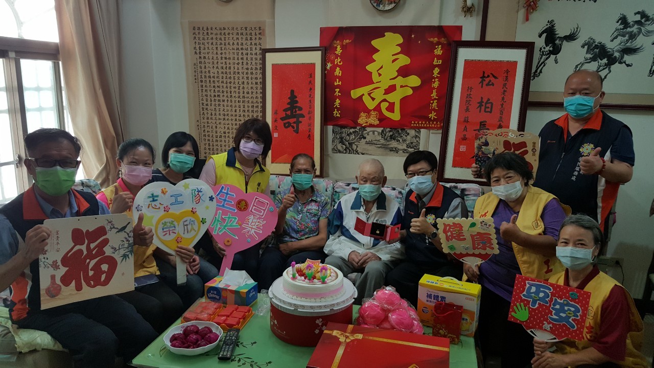 光輝十月歡慶國慶之際,適逢埔里鎮榮民人瑞冷爺爺百歲壽辰,南投縣榮民服務處由處長邱奇賢帶領處内同仁、榮欣志工等,特地前往冷爺爺府上祝壽,並邀請埔里鎮公所一同恭賀爺爺百歲嵩壽。