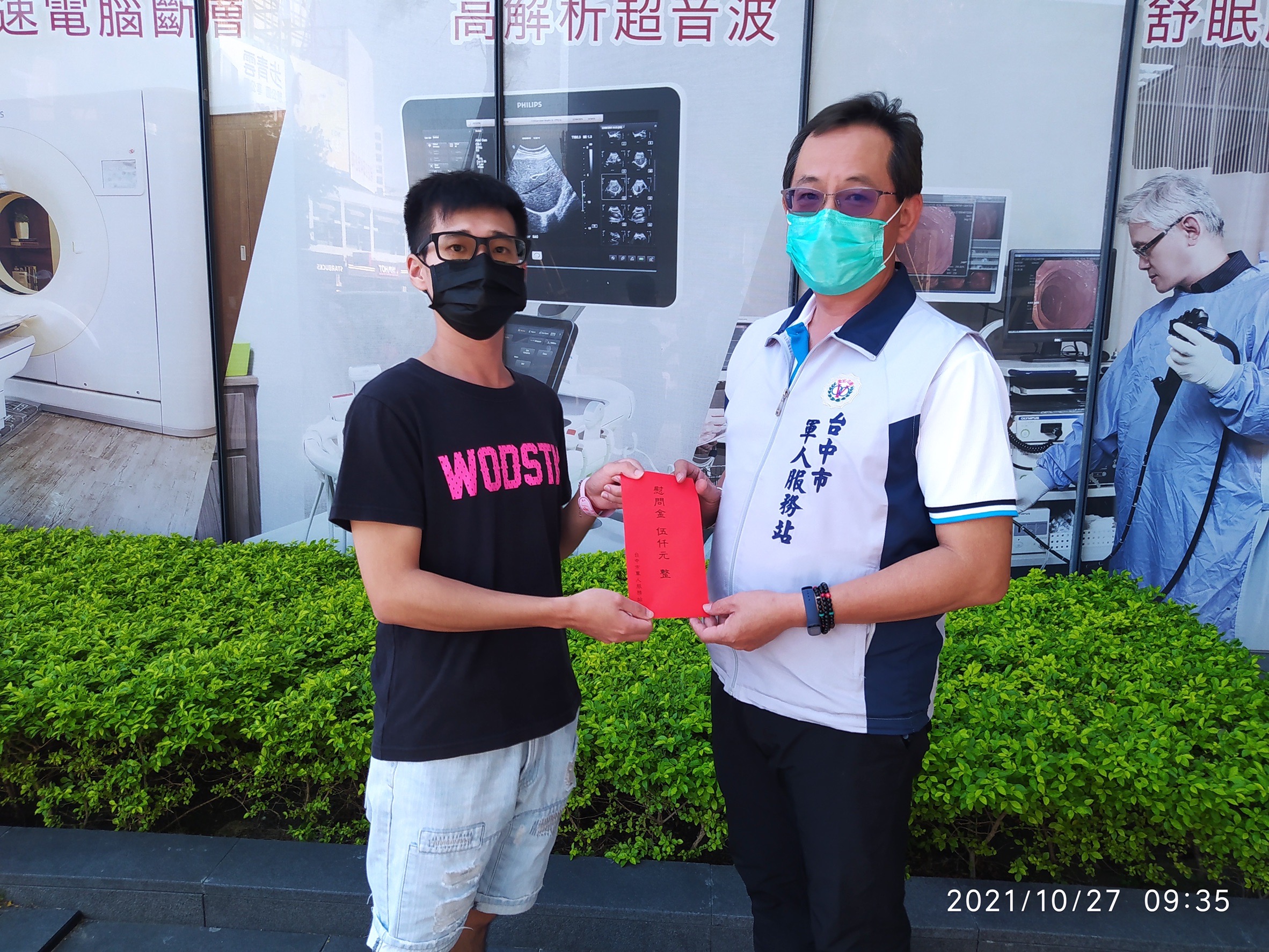 目前服務於陸軍東引地區指揮部保修連王姓士官妻子因懷孕35周,10月26日晚上因大量出血住院治療,吳遠里站長接獲台北市軍人服務站通知,隨即前往台中澄清醫院中港分院辦理國軍官兵急難病困慰問,致送慰問金,並轉達中華民國軍人之友社李棟樑理事長及蔡鴻圖秘書長關懷之意。