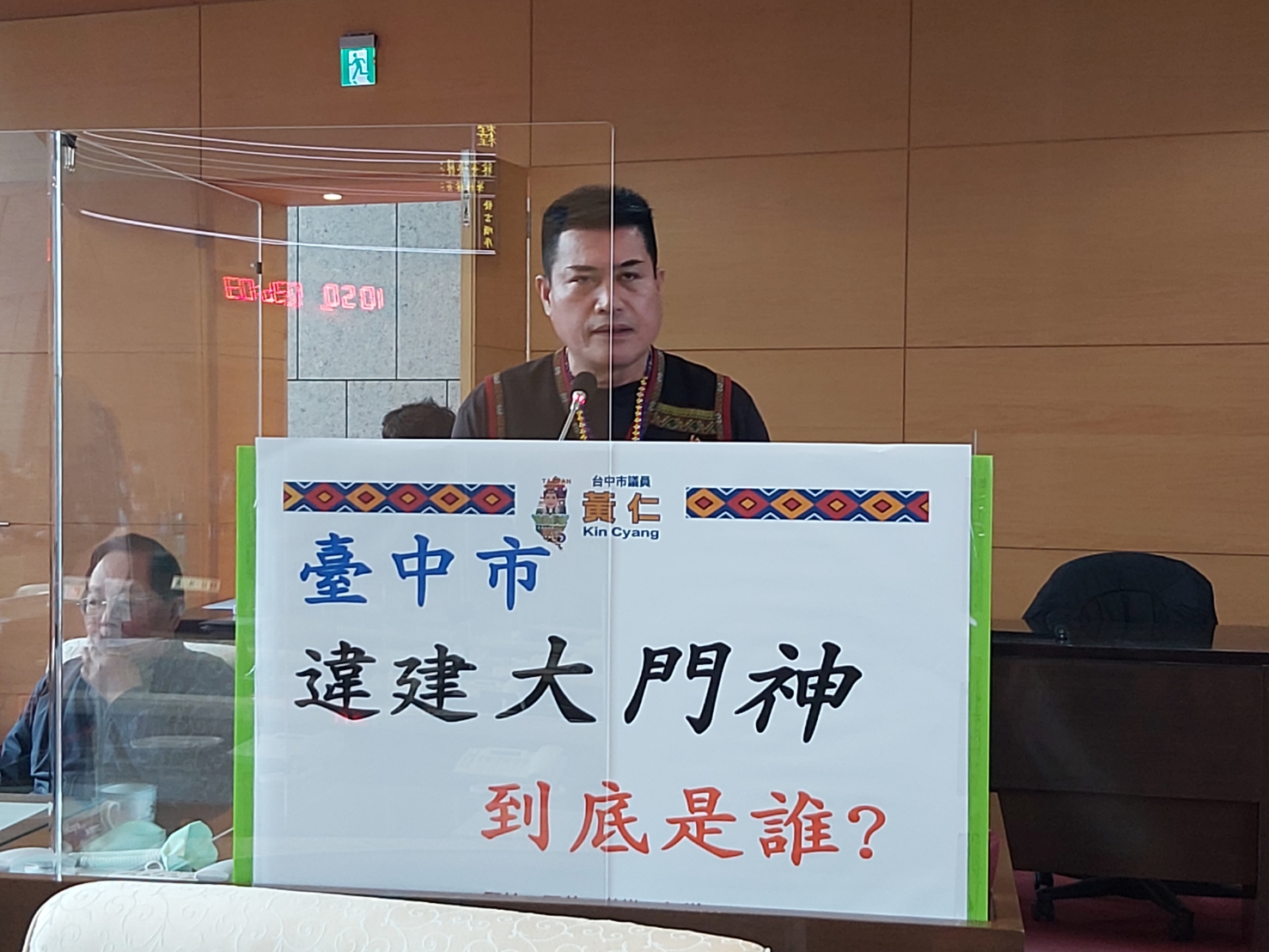 市議會今日進行都發建設水利質詢,市議員黃仁表示,從今年10月底開始就根據市民檢舉、媒體踢爆,連續質詢臺中市潭子、大雅、神岡地區有民意代表,為農地上違章工廠當門神圍事,期間,本席也邀集了地政、農業、經發、都發局等單位,進行了現場聯合會勘。一棟棟蓋在農地上,動輒千坪以上的黑色鐵皮大型違建,讓人看得怵目驚心,組織化、企業化經營,讓外界喊出了「黑色違章企業集團」。這個集團靠違建月收入上看千萬元,現在臺中市各界最好奇的,到底是哪一位門神,手眼通天,可以蓋出那麼多圍章建築,臺中市政府公權力卻對他莫可奈何。