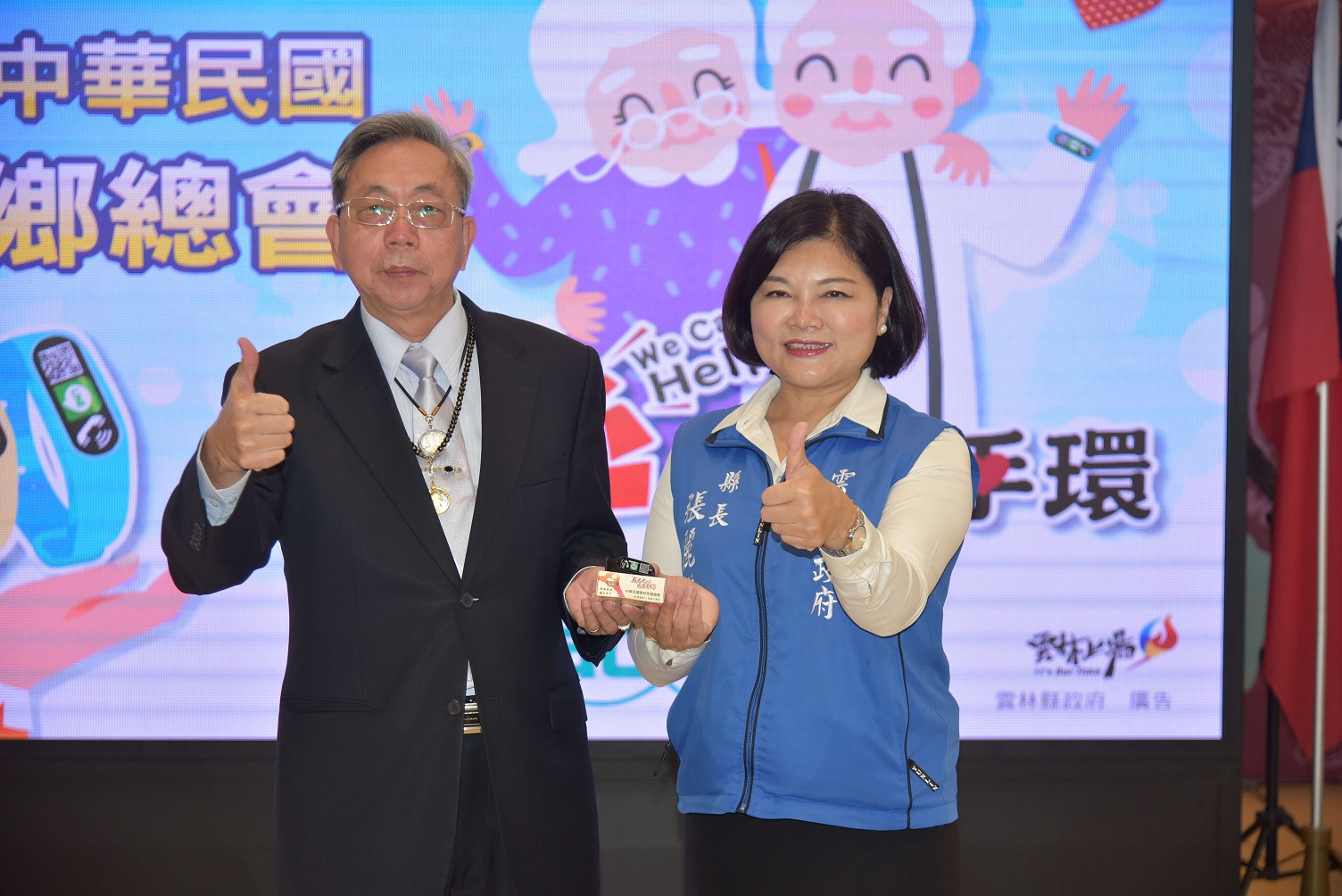 中華民國雲林同鄉總會為照顧雲林縣失智長輩,今(24)日藉由本次記者會捐贈本縣愛心手環3,500條,透過「愛心智能手環」一碼通QR-CODE掃碼功能,快速定位和快速聯繫家屬,以減少失智長輩在外走失情形,即時提供長輩救援和服務。雲林縣長張麗善、縣政總顧問張清良、雲林同鄉總會總會長李景雄、議員廖郁賢、二崙鄉長鍾福助皆出席感謝雲林同鄉總會回饋母縣,讓失智長輩順利找到回家的路。