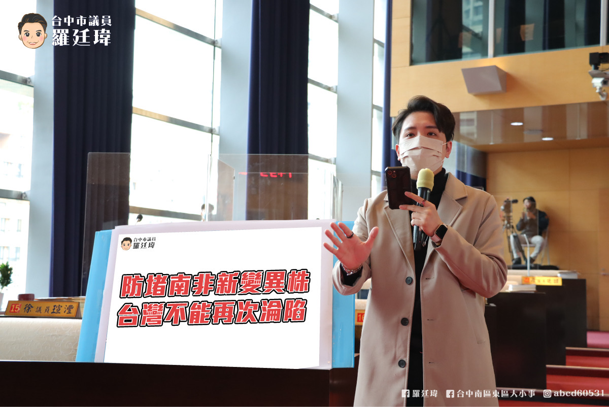 台中市議員羅廷瑋今天也特別提醒相關單位,這波返鄉潮務必要將國門守護好,防範病毒於境外,也希望所有返國國人都能遵守防疫規定。雖然國內疫苗涵蓋率第一劑已達7成,但在前幾日些許國家出現了南非新變異株(Omicron)。根據醫療應變組副組長羅一鈞表示,11月12日南非首次發現此變異株,在短短2周快速成為當地主流病毒株,所以春節期間勢必又是一場防疫戰爭,請大家勤洗手、消毒,戴好口罩,保護你我及家人的安全,大家一起團結對抗病毒。