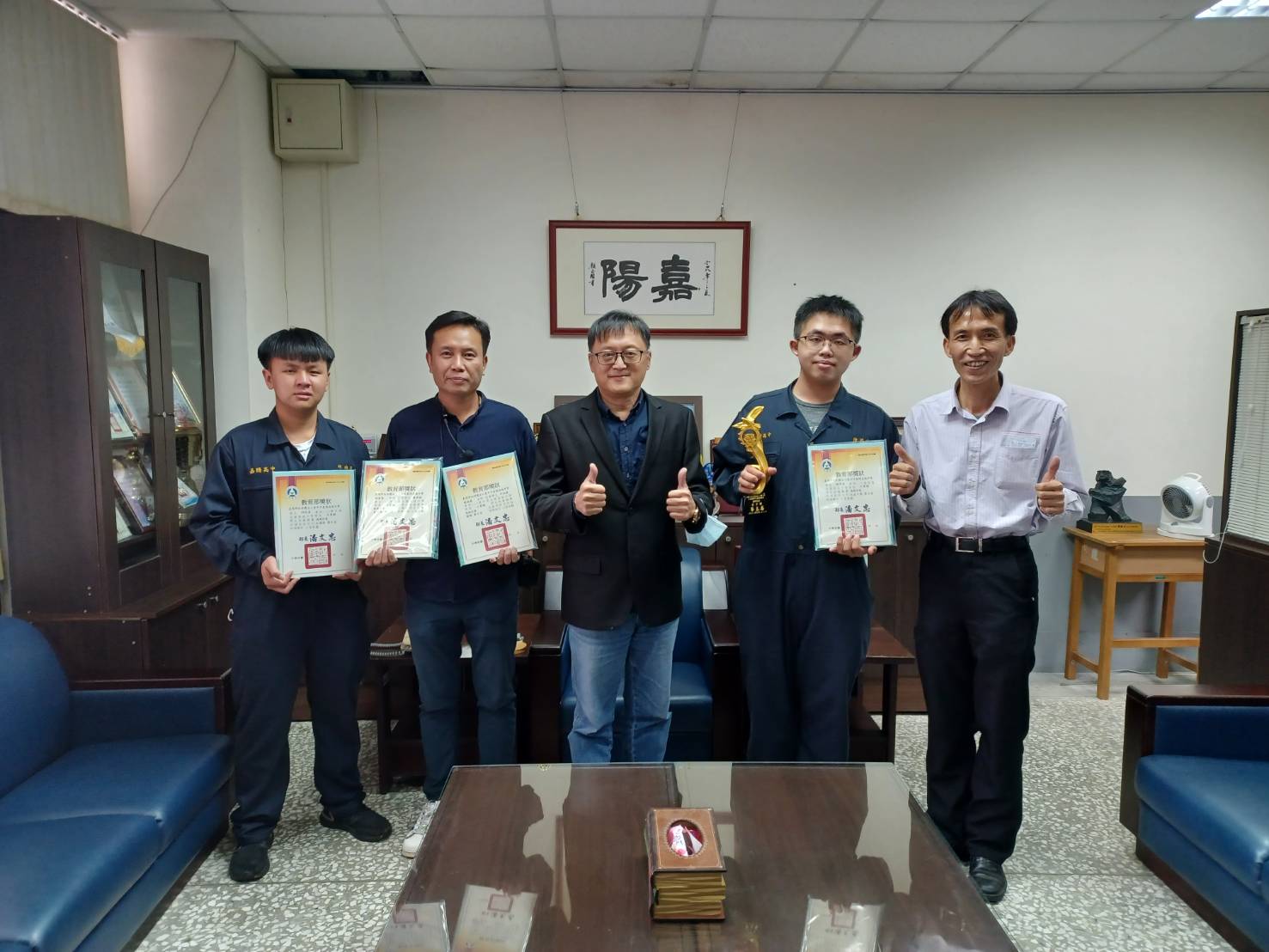 教育局指出,東勢高工榮獲家具木工職種金手獎全國第2名的吳昇憲同學剛參加完今年10月的勞動部全國技能競賽,因為總決賽時過度緊張導致表現失常,鎩羽而歸,在這次的工業類藝競賽決賽關鍵時刻,剛開始還是緊張到手抖個不停,但他在心中不斷重複鍾盛賜老師「一定要保持平常心!」的叮嚀,讓心情安定,終於拿到好成績。