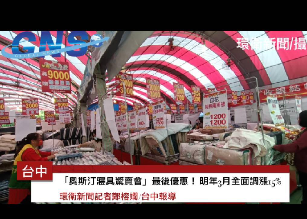 台灣知名寢飾品牌「奧斯汀寢飾」董事長孫連禧,今日在「奧斯汀寢飾驚賣會」指出,受到近年來工資上漲逾一成,天然原物料如羽絨、蠶絲及乳膠等平均上漲兩成,在萬物皆漲價下,已經3年未漲價的奧斯汀寢飾也撐不住了,宣布自2022年3月起,寢飾商品將全面調漲15%,以反映成本。