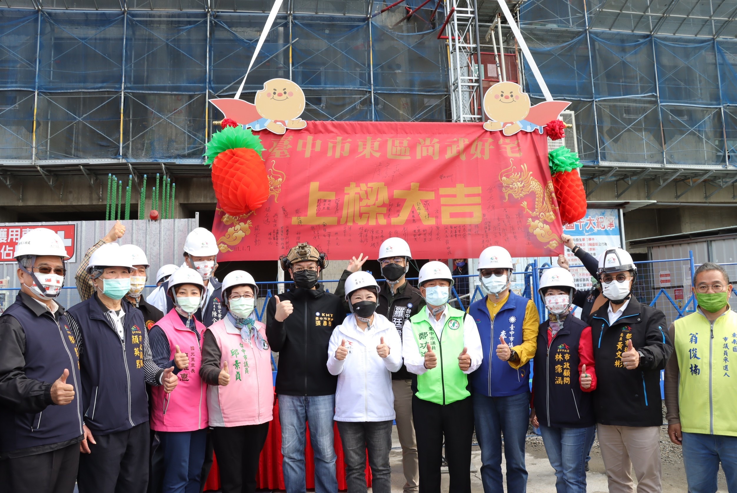 台中市東區尚武段社會住宅自108年4月開工,今天進行上樑典禮,預計111年底完工後開放給市民租用。本社宅除了提供802戶的住宅外,也設有親子館、長青教室、店鋪、社會服務站及作為設計相關產業的育成中心,是一個功能性相當完整的社區,而且尚武好宅屋頂不只有光電設施、開心農場、還有300公尺的跑道!!也是台中是少數的特色。