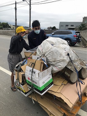 員警考量江男的資源回收推車滿載難以控制行進方向,行進緩慢易造成後方塞車及交通事故,逐熱心協助將其推車推往四德路上資源回收廠,江男非常感謝警方熱心協助,頻頻點頭微笑致意。