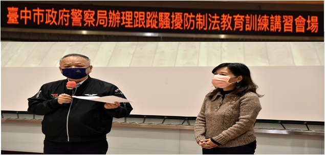 中市警局長蔡蒼柏非常重視本次新專法施行前之教育訓練,親臨現場引言致詞勉勵同仁,並特聘請臺灣臺中地方檢察署主任檢察官洪淑姿擔任「跟蹤騷擾防制法釋義解析暨偵查作為應注意事項」講座,除確立工作目標外,並藉由法理與實務交流分享,精進工作方法,以提升案件處理品質。