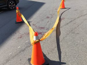台中市太平區中山路4段今天上午11時許發生砍人案,疑似因為行車糾紛,2車追逐至該地點,1名男子下車持西瓜刀朝另輛車上3人猛砍,造成1名男子手指被砍斷,地上血跡斑斑,警方獲報到場拉起封鎖線,正調閱監視器以車追人。