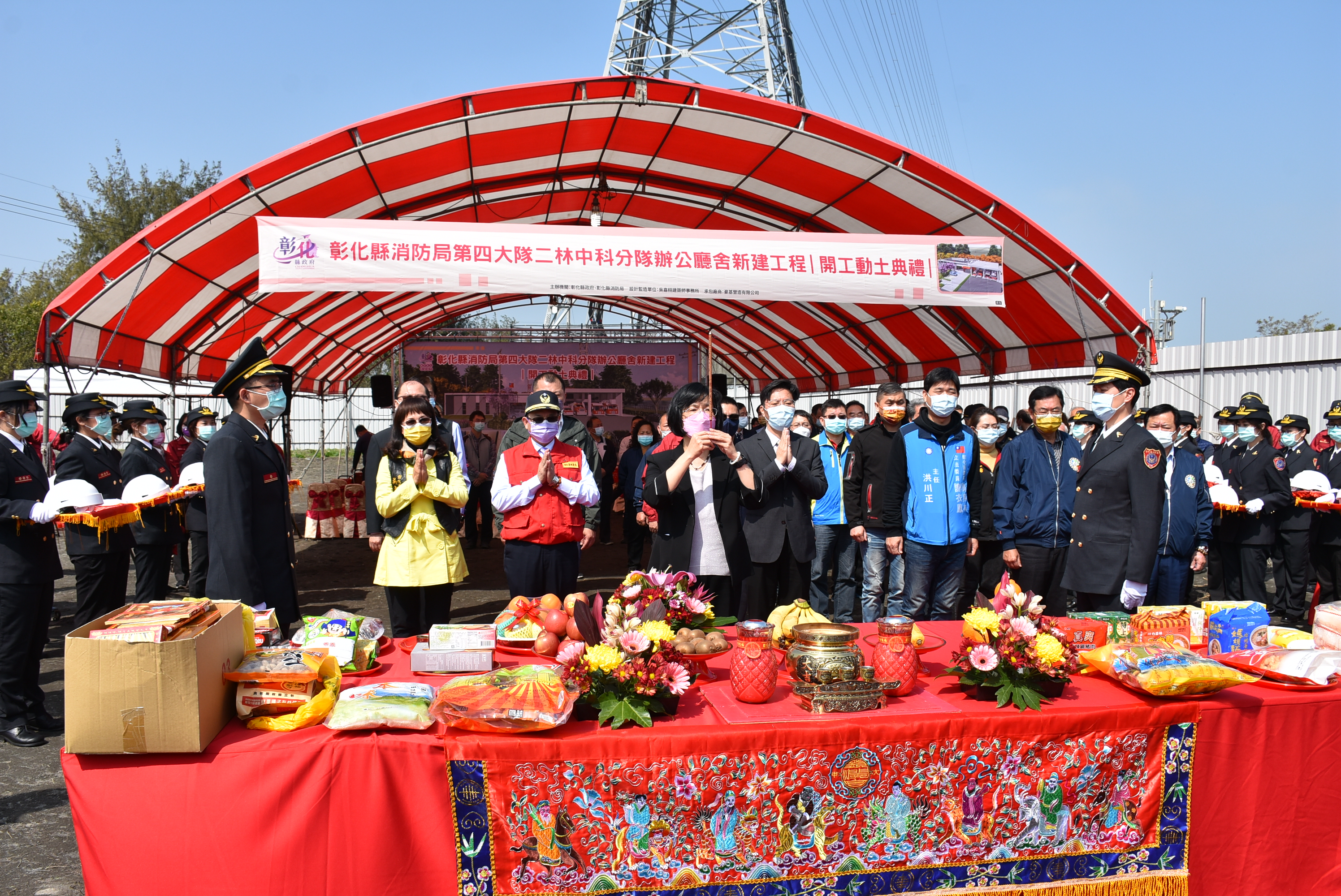 縣政府重視民眾安全,努力運用有限資源,陸續增設本縣必要消防分隊廳舍,期望藉此提升救災品質及效率;二林鎮為本縣農業重鎮,更以葡萄、蕎麥、紅薏仁農產品打響「二林三寶」名號,提供葡萄教學示範區之戶外教學與生態導覽,蕎麥花雪白花海撲滿大地,是國內重要觀光景點,更成功帶動周圍鄉鎮地區的繁榮,每逢假期更吸引大量觀光人潮,此時彰化縣消防局第四大隊二林中科分隊辦公廳舍開工動土的興建,是縣府團隊擴大為民服務的一大盛事,廳舍啟用後可強化二林地區消防搶救時間上的差距,代表二林鎮的躍進與進步,也具有重大深遠的歷史意義。