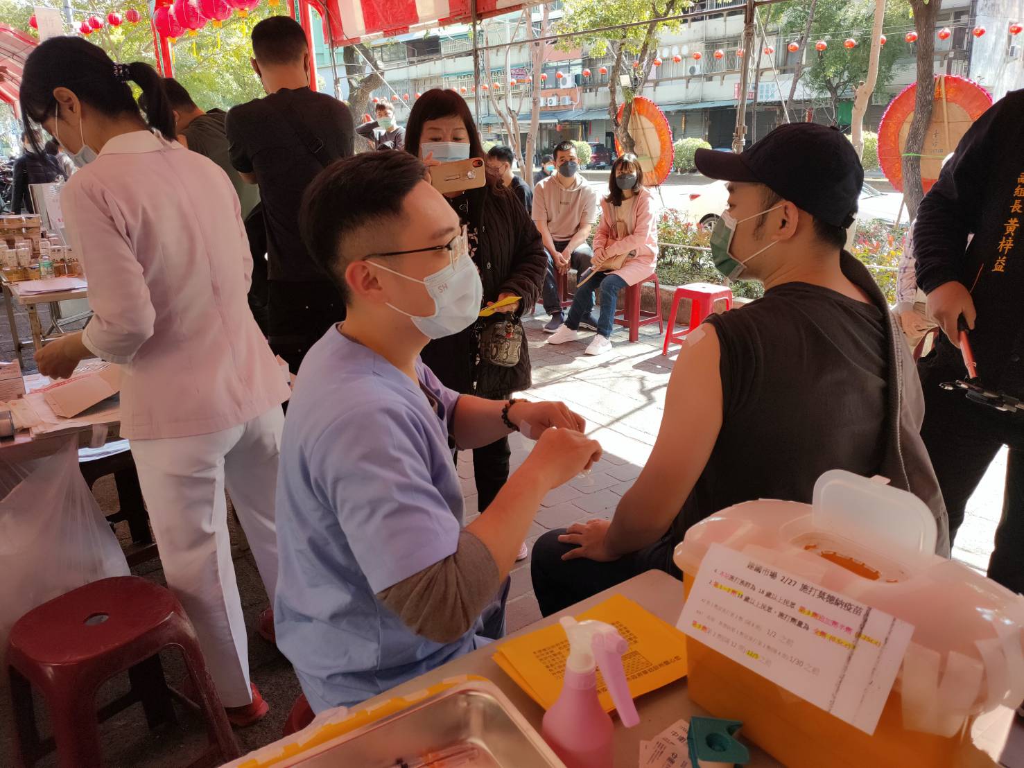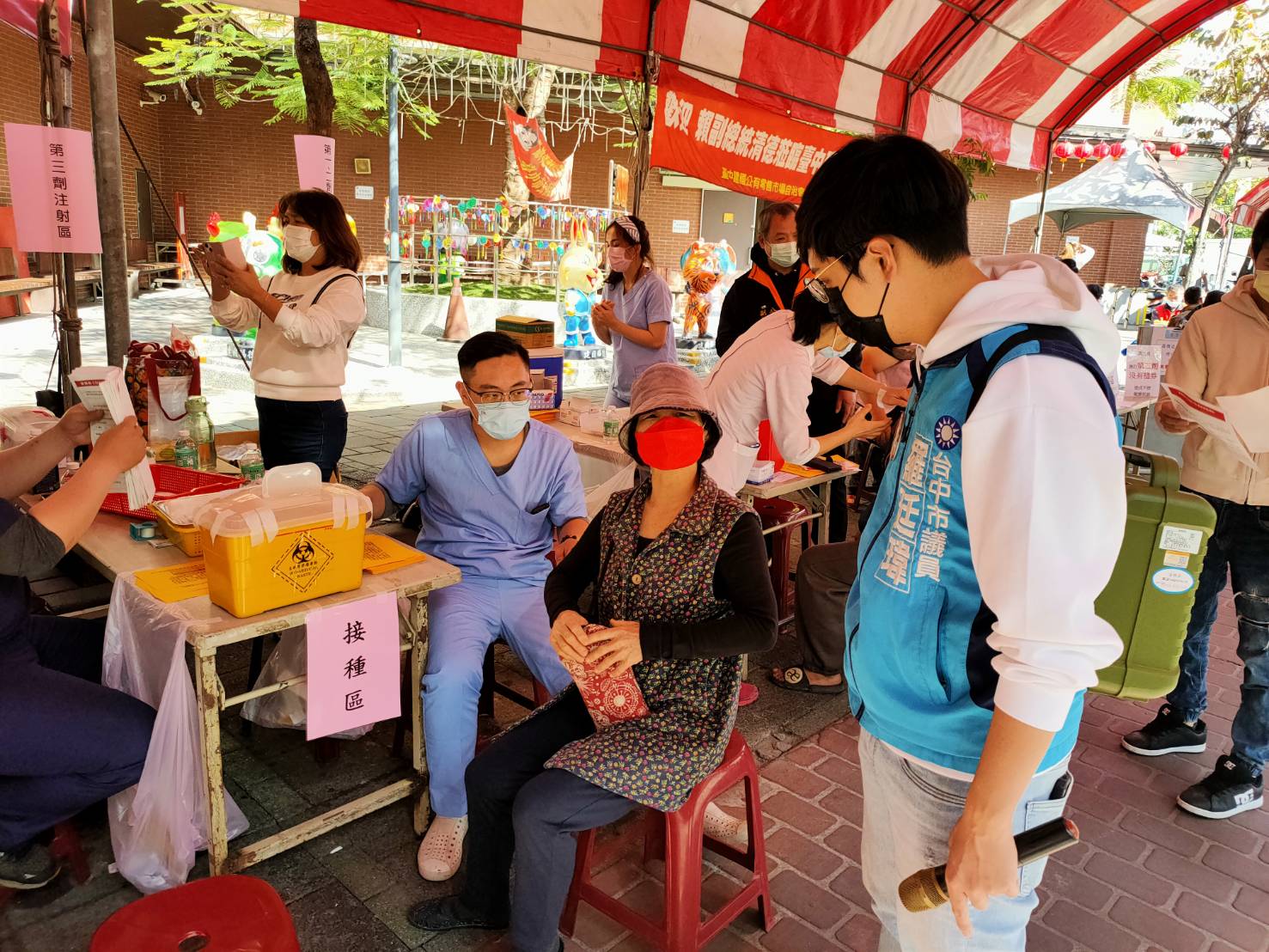 臺中市衛生局今日於台中市建國公有零售市場設置臨時快閃站,提供給市場攤商和民眾施打新冠肺炎疫苗,而今日民眾接種意願踴躍,才開打一小時已經有超過220位施打完成,其中也不乏來接種第一、二劑的民眾。