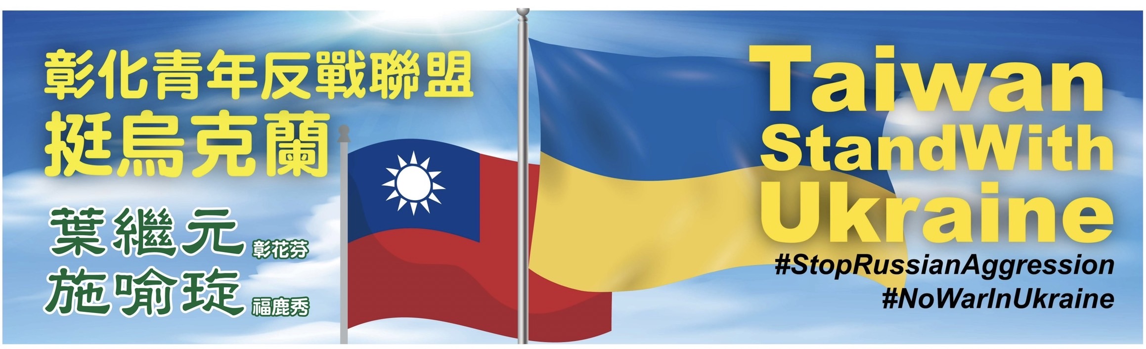 NO WAR! STOP PUTIN! 彰化青年反戰聯盟共同發起人葉繼元、施喻琁、鐘翊禹、洪郁翔等青年批評,俄羅斯總統普廷違反聯合國憲章攻打烏克蘭,侵害主權國家之政治獨立和領土完整,彰化青年反戰聯盟聲援烏克蘭,因台灣和烏克蘭同為國際社會民主陣營成員,呼籲彰化鄉親除協助政府提供烏克蘭所亟需物資,同時一人一信給莫斯科台北經濟文化協調委員會,呼籲普廷停止戰爭。