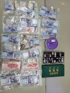 員警為避免圍捕時賭徒脫逃,於民宅周遭及防火巷部署警力,見時機成熟出動大批警力進入民宅,當場查獲王姓主嫌及賭客共22人,並查扣天九牌賭具及賭資新臺幣50餘萬元等證物,經查證該職業賭場每天皆在不同地點開設、流竄,第一次進入大里區開設即遭該分局查獲,全案警詢後王姓主嫌及賭客依違反刑法賭博罪及社會秩序維護法移請臺灣臺中地方檢察署偵辦。