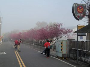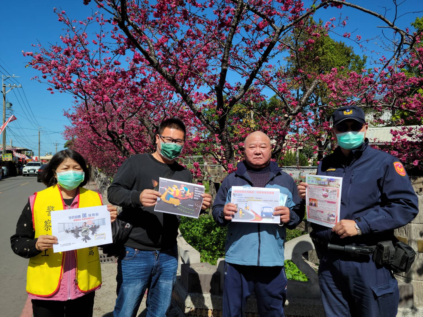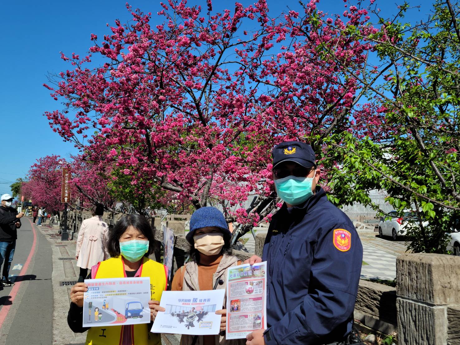 大甲警分局表示,現轄區有「最美櫻花派出所」之稱的泰安派出所正進行櫻花季活動,每日均湧入大量遊客前來賞花,為的是一睹『嬌艷多瓣八重警櫻』美景。請警察志工在活動期間於櫻花樹下發放交通安全傳單及溫馨的提醒宣導,得到了賞櫻民眾的熱烈回應。
