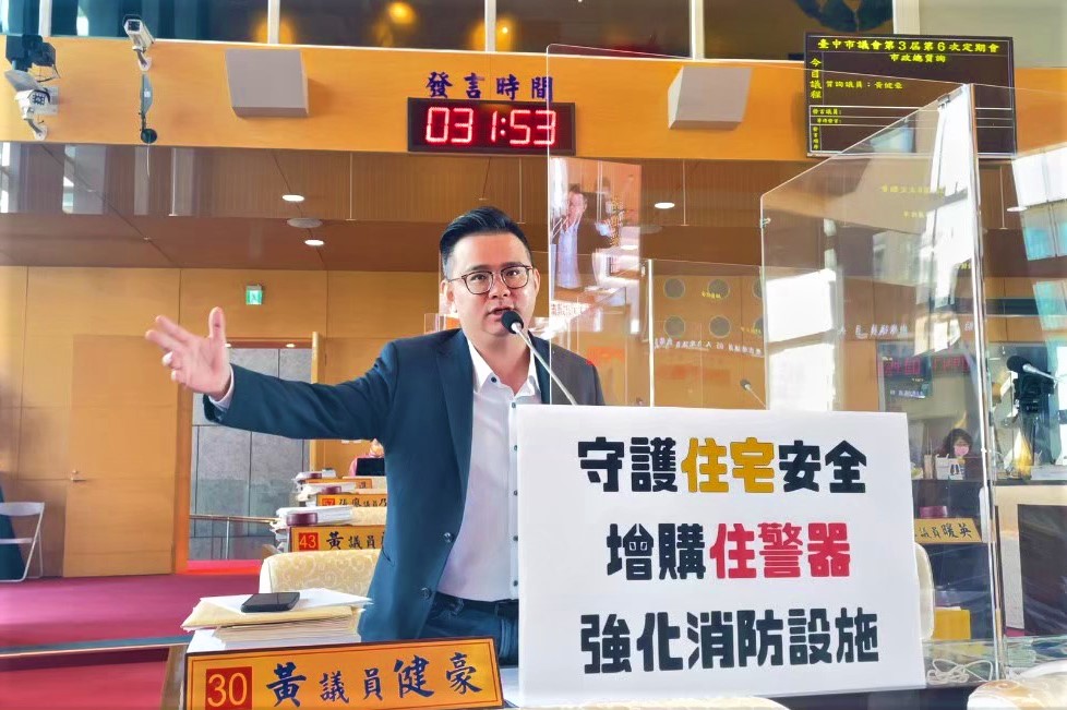 市議員黃建豪再強調,去年總質詢時,就在議會要求盧秀燕市長幫這些「不歸公寓大廈管理條例管的大樓」添購防災器材,包含動用第二預備金1100萬元購買住警器和滅火器等,在不受公寓大廈管理條例的部分,才希望市府想辦法介入,彌補私人領域不足的地方,但購置防災器材只是救急治標,真正的治本方式,還是需要透過修法解決。