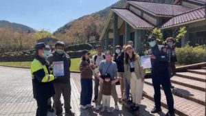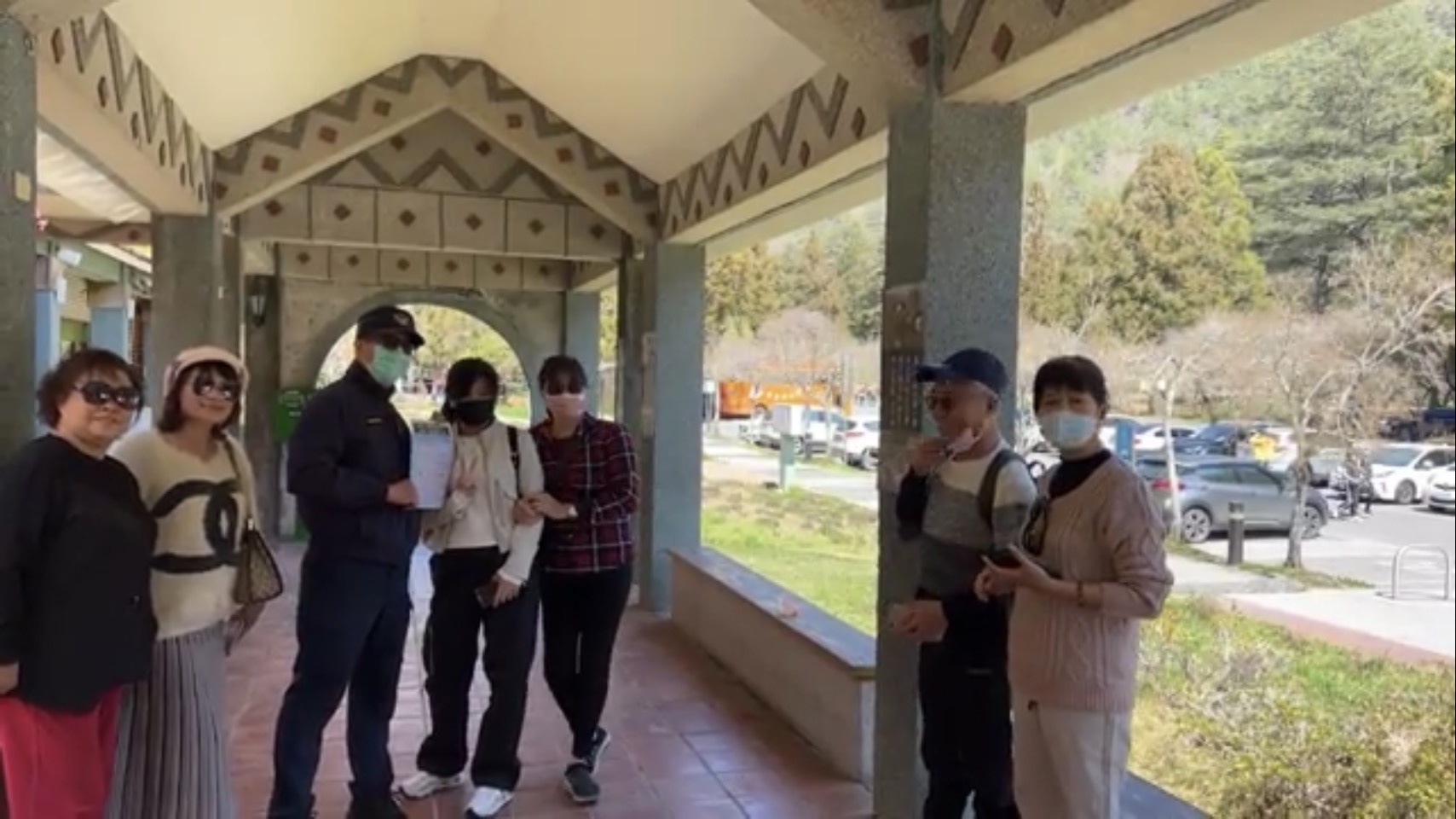 昨日中午臺中市和平警分局勝光派出所副所長張明殷、警員劉偉男在武陵農場向遊客宣導治、交安時,引來正在直播的農場小編助攻宣傳,呼籲民眾切勿酒後駕車。