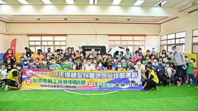 台中市政府運動局進行基層迷你足球推廣計畫,與台中市海線足球協會今日前往海線沙鹿區推廣,邀請12支幼兒足球隊伍、超過600位在地孩童參加,並辦理足球闖關、抽獎等活動,吸引許多家庭親子同樂。