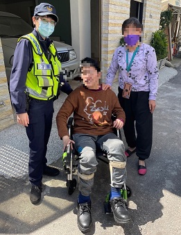 警方安全載返家後,其外婆表示身障兒有唐氏症及雙腳萎縮,媽媽過世,爸爸離家出走,平時皆為外婆照顧,先前皆未有離家過,這次離家是想外出找工作,幫家裡增加收入,所幸這次遇上熱心民眾及警方的積極協助,才能讓年約