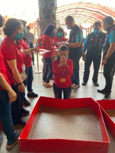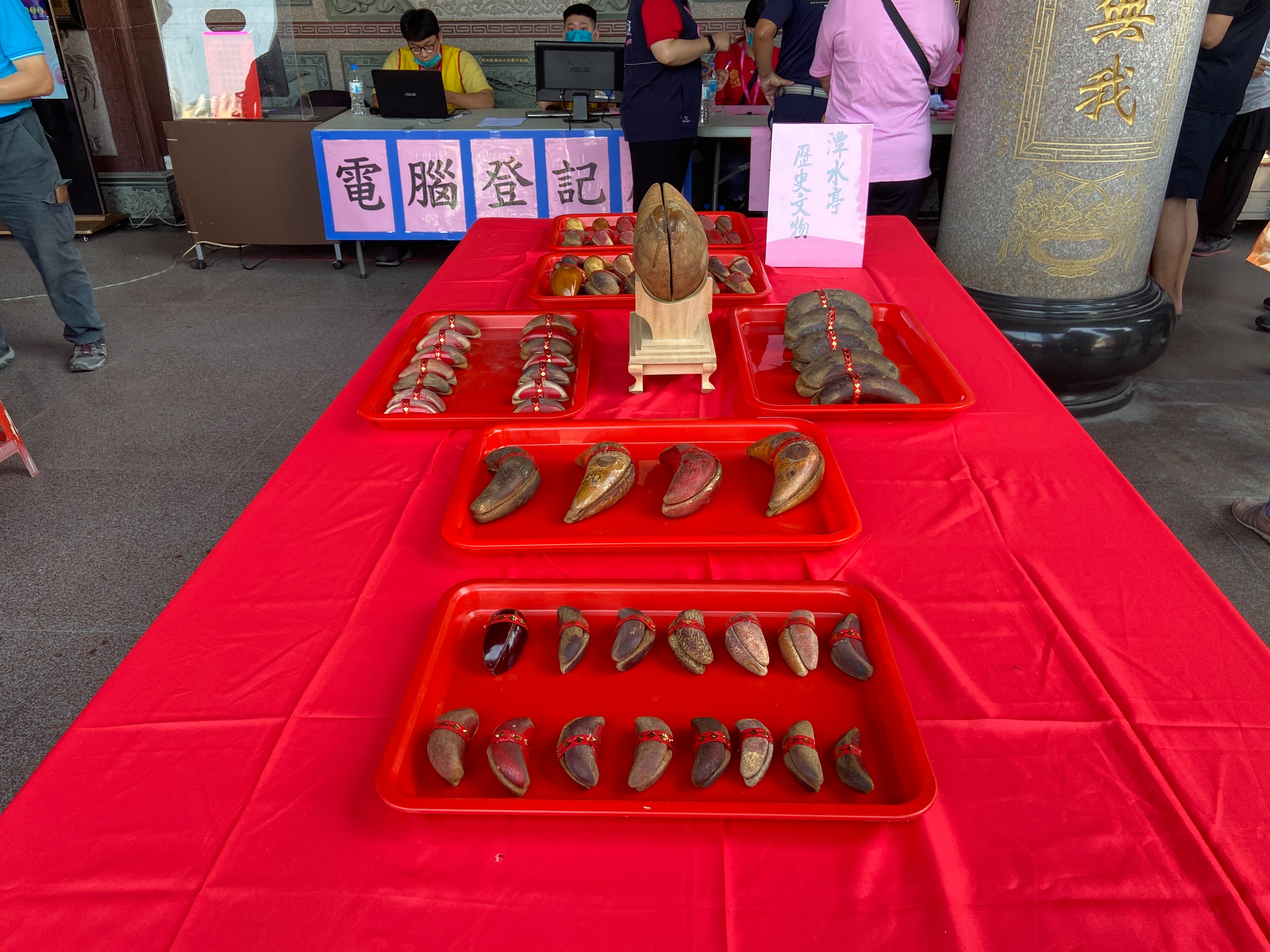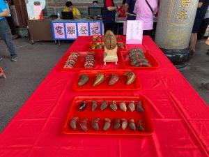 週日一早,潭子潭水亭就有不少民眾一同來參與擲筊大賽,當桌面擺出一個個各具有獨特風貌的聖筊時,吸引了在場所有民眾的目光。這些歷史悠久的聖筊是民眾與潭水亭觀音媽溝通的法器文物,這是重要的傳聲筒,靠著每一副不顯眼的聖筊與潭水亭觀音媽溝通請示,解決了數不盡苦難眾生的疑難雜症。每一副聖筊所呈現的樣貌,代表每個人與觀音媽祈求的心願,都應該好好的保存尊重。尤其潭水亭的主委及常務監事也是藉由擲聖筊與觀音媽溝通(搏杯)所產生。也拜託大家一起幫忙及響應來搜集保有關潭水亭相關的歷史文物及文化傳統。
