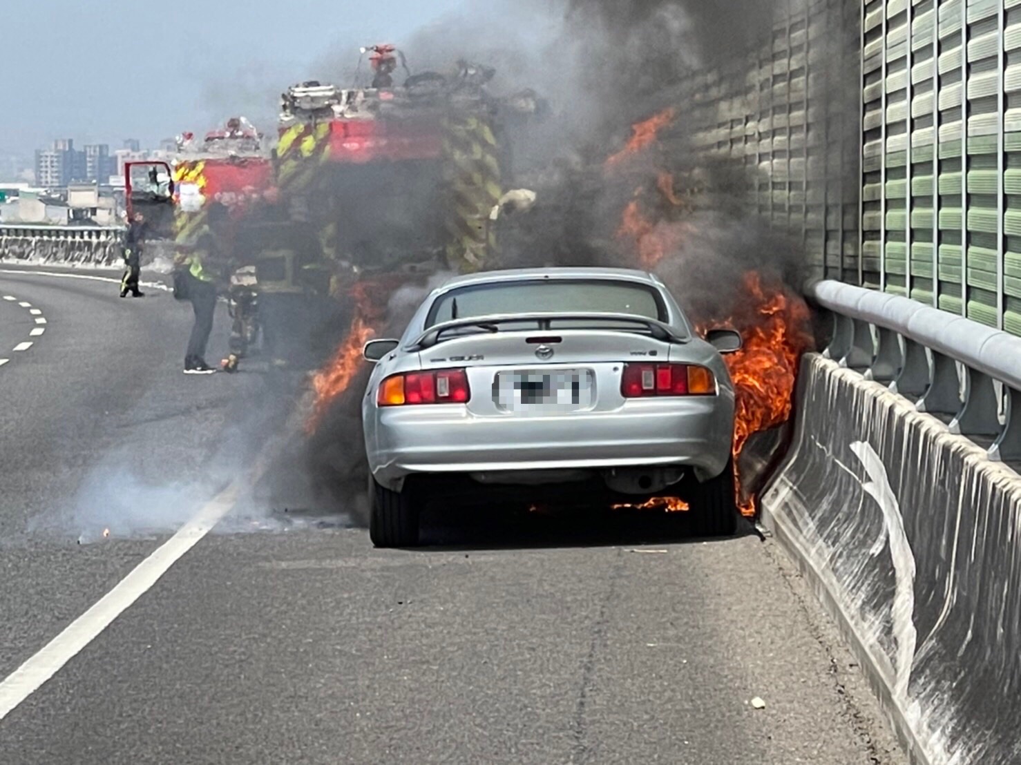 台中市台74線霧峰路段今日發生一起火燒車事故,所幸林姓女駕駛和乘客、雙胞胎妹妹因在火勢轉大前下車查看,才未受傷,順利逃過一劫。